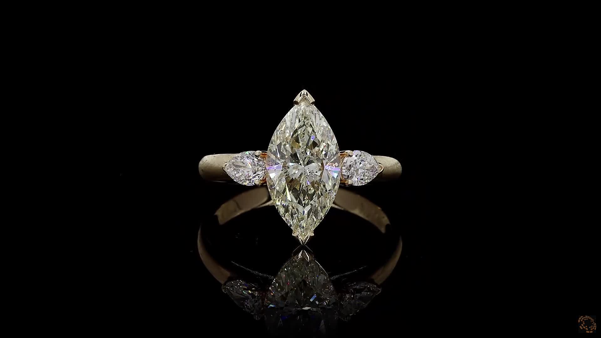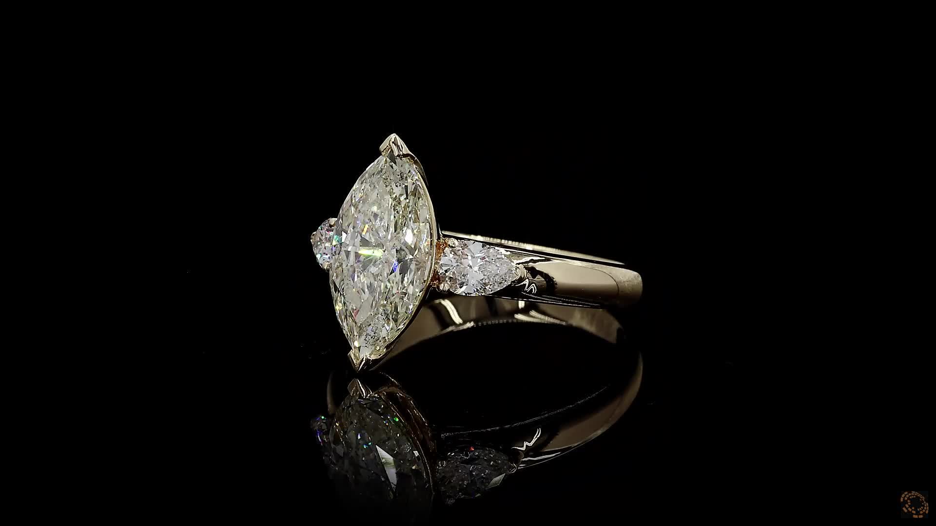 Materials: Natural 2.53 cts. Marquise Diamond L I2 Gd Gd Ft.,Natural Pear Shaped White VS Diamonds (0.50 cts.), 18K Yellow Gold