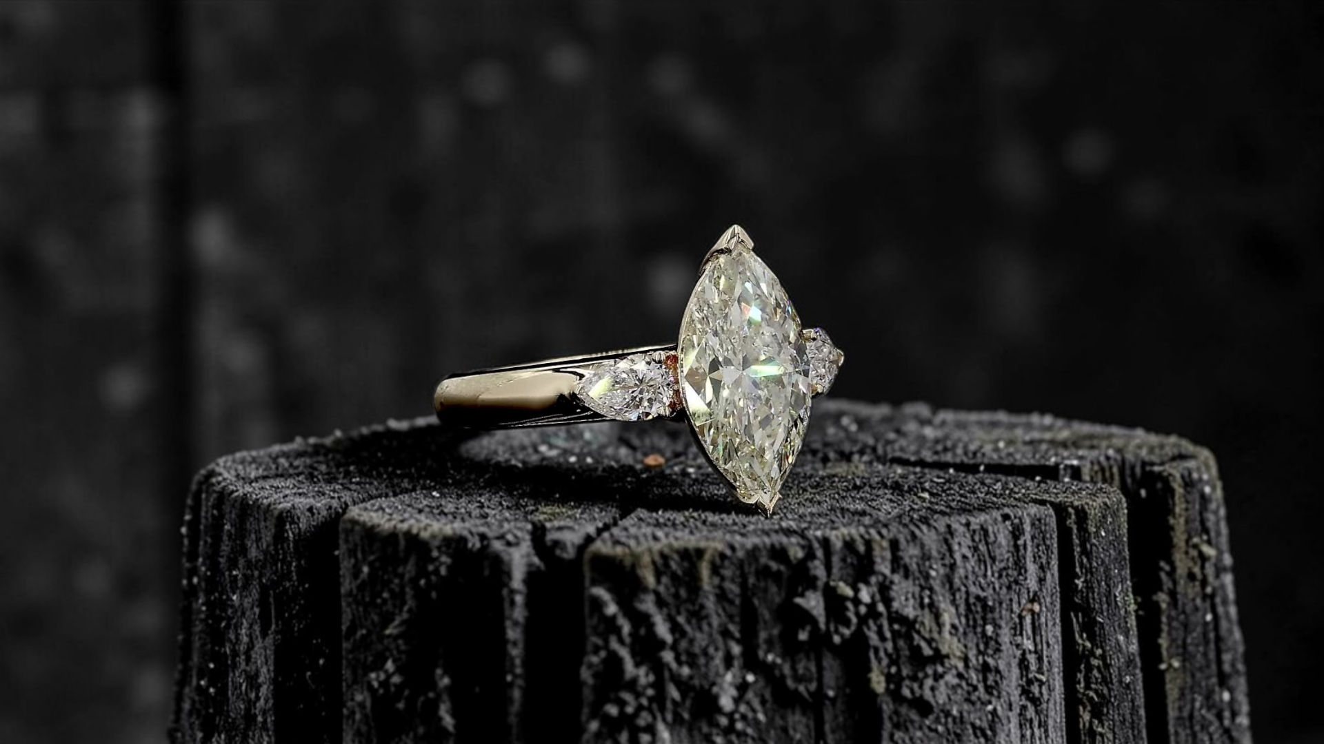 Kobayashi 2.53 cts. Natural Marquise Eye-Clean L I2 Diamond Size US 7 Cocktail Ring, with 0.50 cts. Natural Pear Shaped White Diamonds, and 18K Yellow Gold - GIA Certified - R8