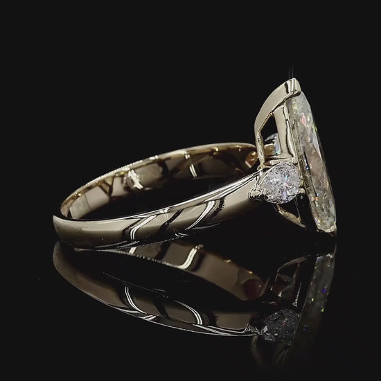One of FYORO's finest creations; this Ring uses a completely natural 2.53 cts. GIA Certified Marquise Diamond as the centre stone, with two pear shaped white natural diamonds on each side. The simplistic design is used to elevate the stones' natural shimmer.