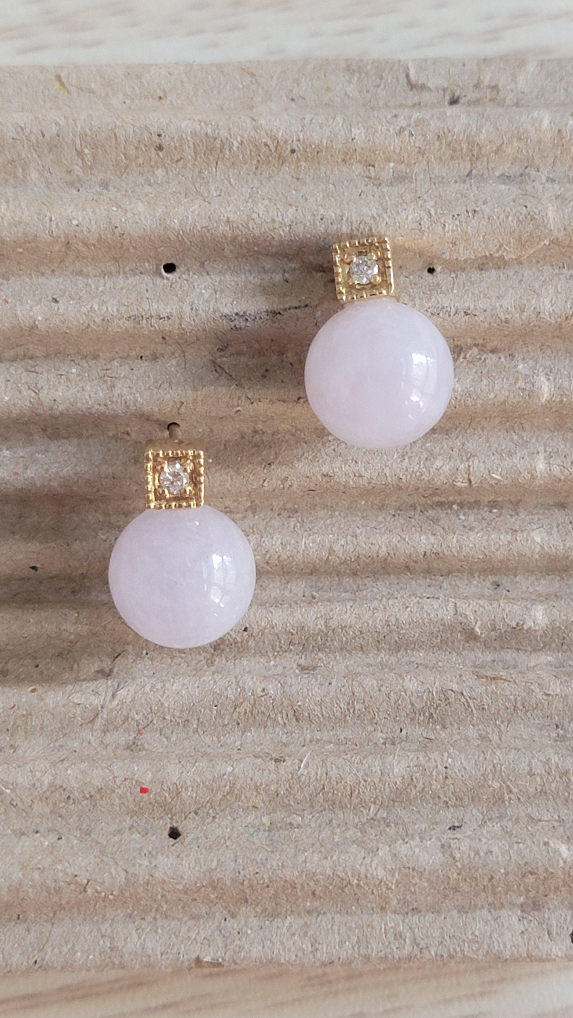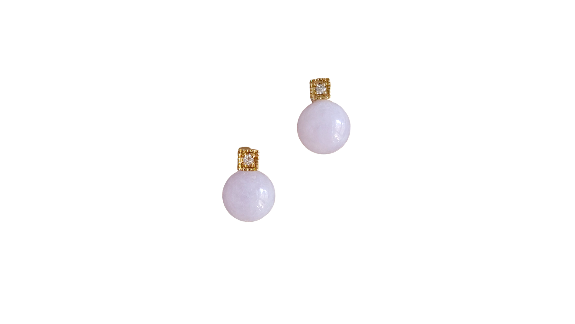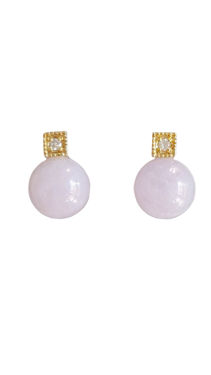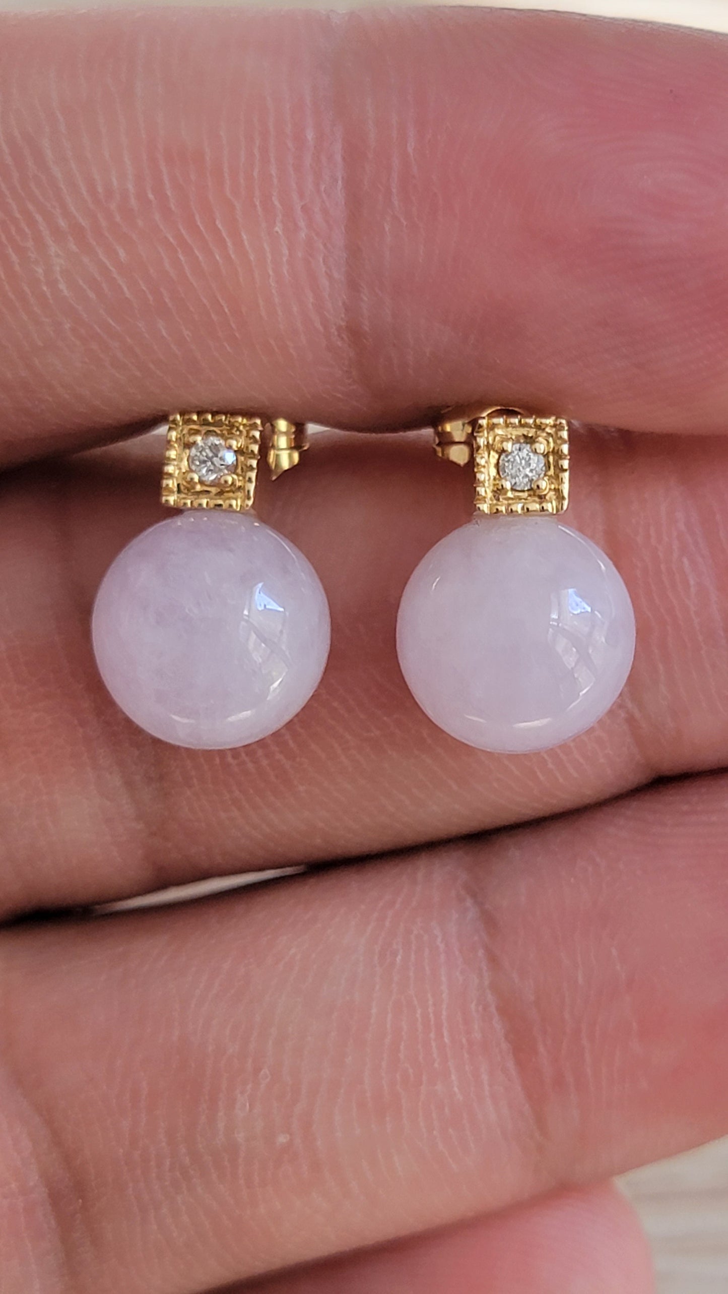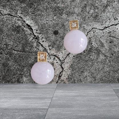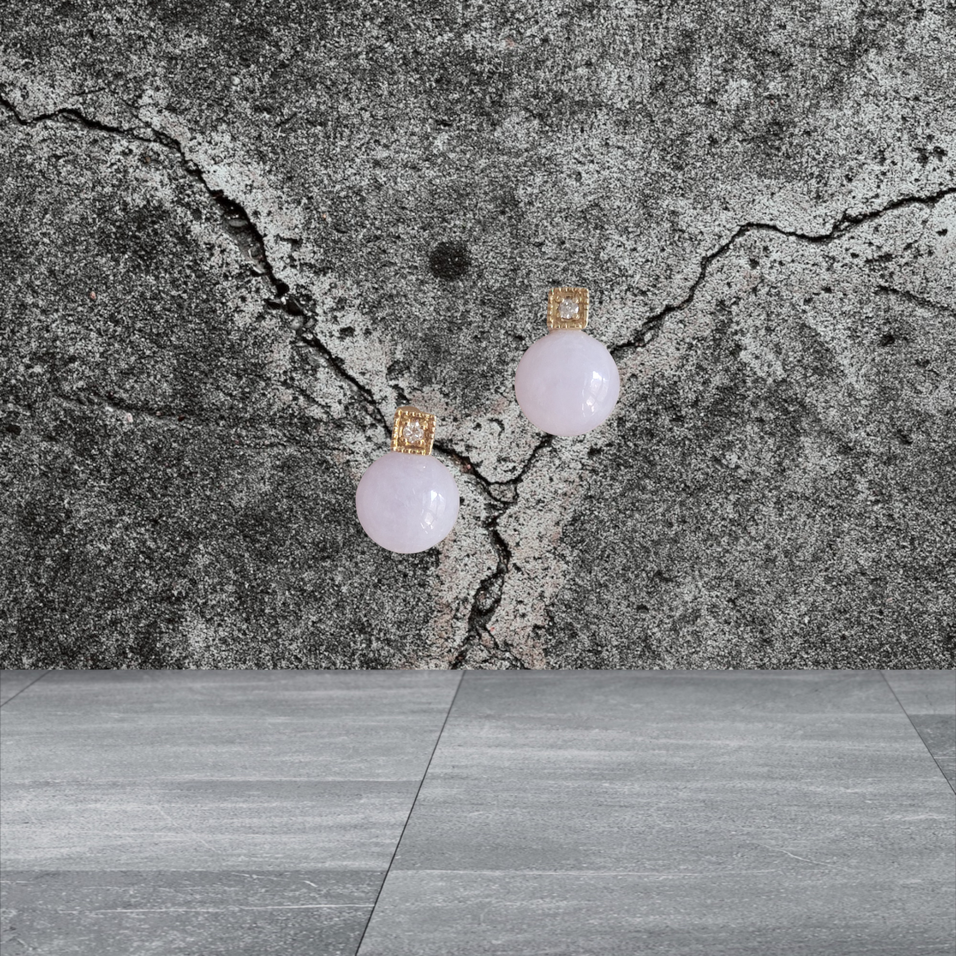 Kyoto Burmese Lavender A Jade Bulb Earrings with 14K Yellow Gold and White Round Diamonds