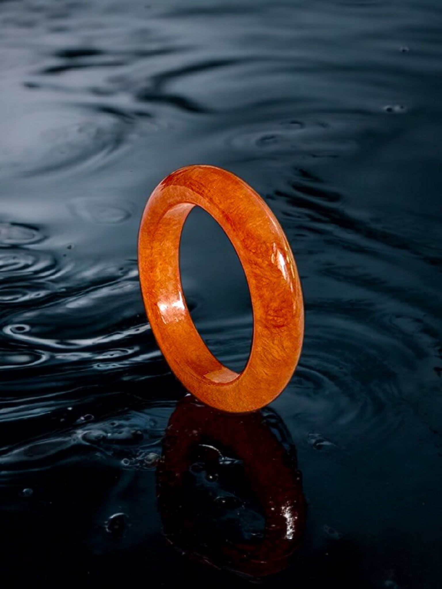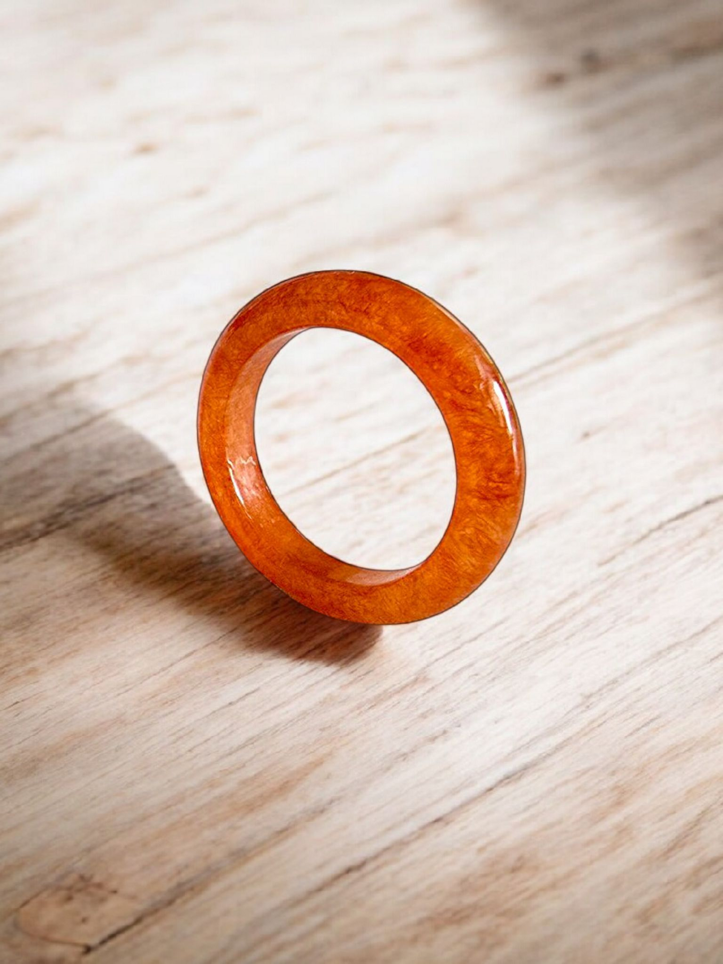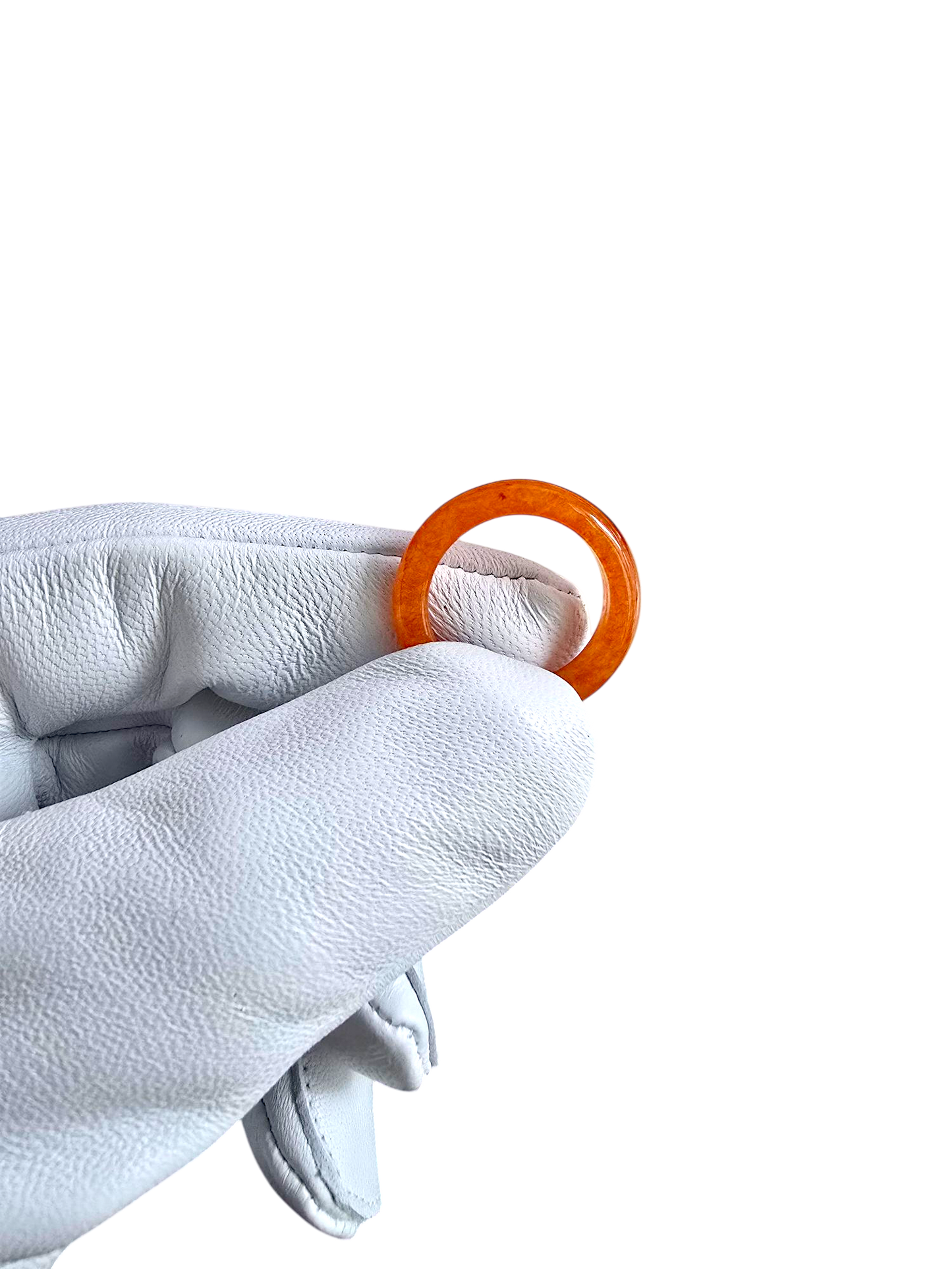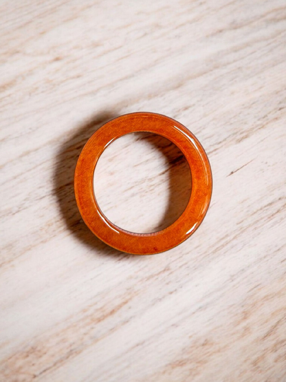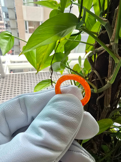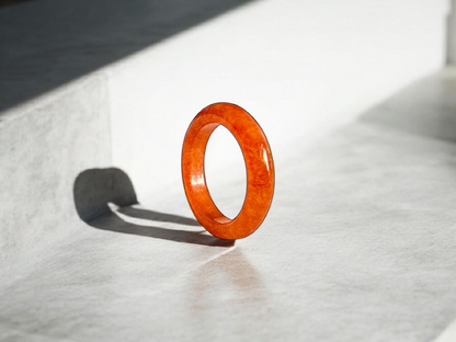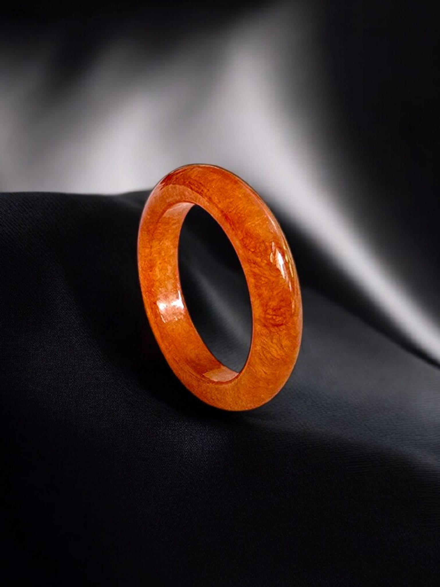 Each ring is unique and exclusively One-of One. With fibrous interwoven hues, this jadeite ring has a deep Orangey-Red tone with splashes and streaks of Intense Red Jadeite. Perfect luster and light, excellent translucency and no cracks or blemishes on the ring.