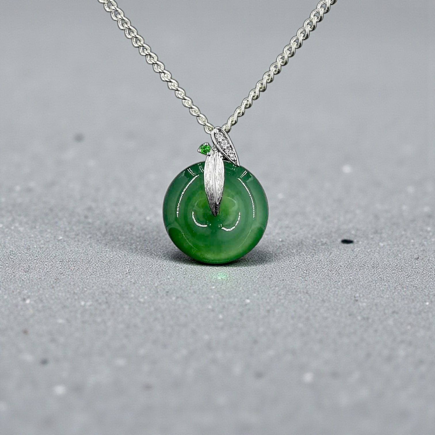 The Niseko Round Burmese A-Jadeite Pendant is a distinctly FYORO design, symbolizing the history of Japan.
