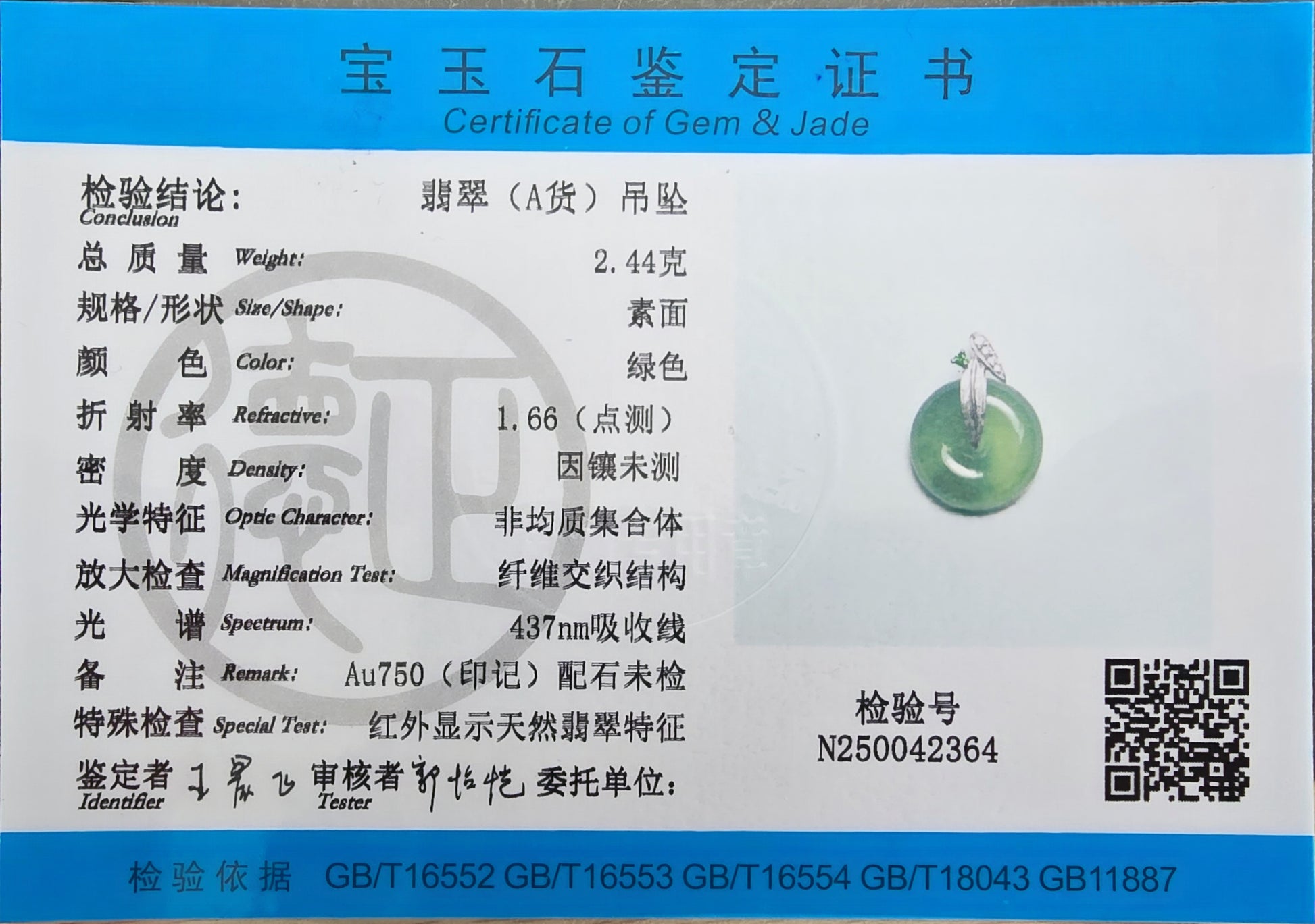 Materials: 1.46g Burmese A-Jadeite, 1.00g 18K White Gold, 0.02g Natural White Diamonds