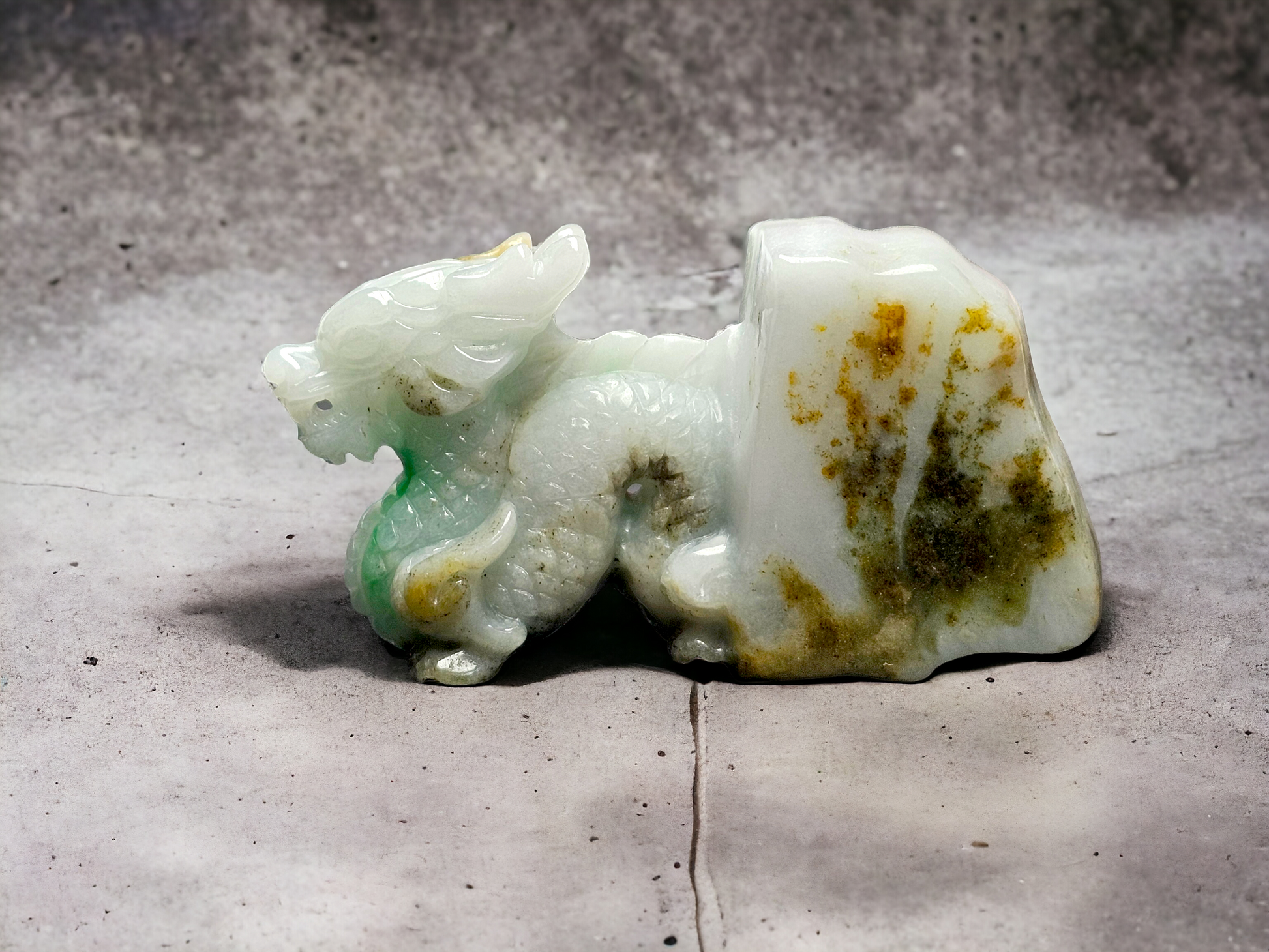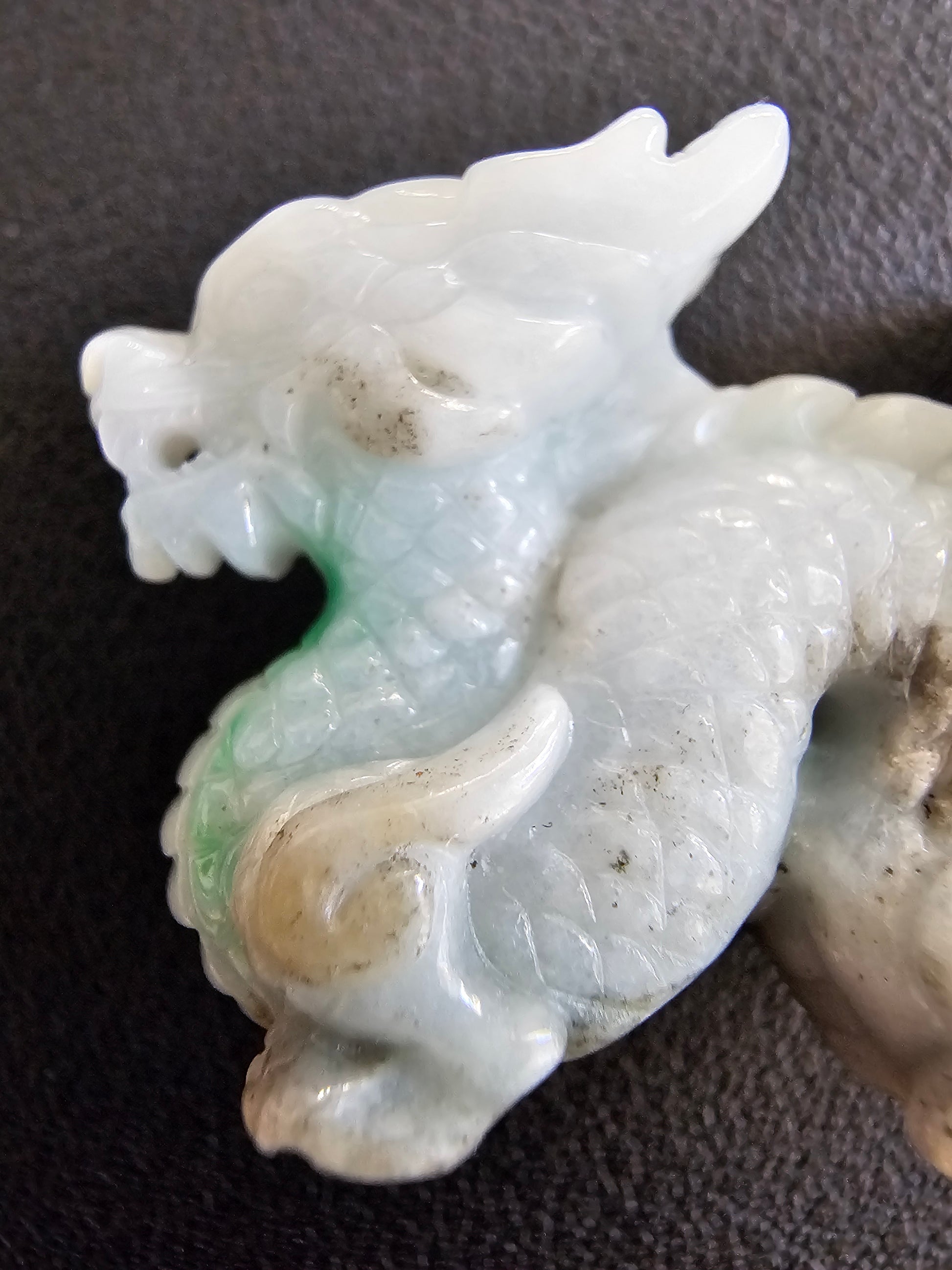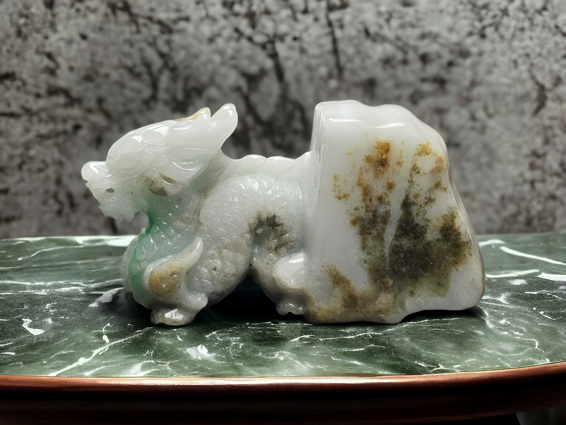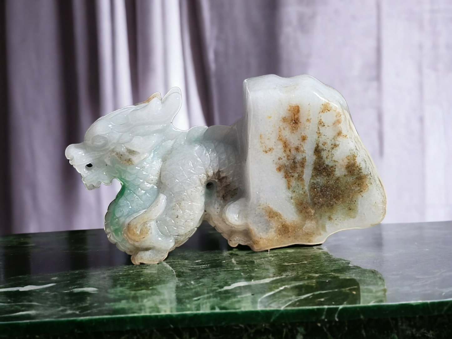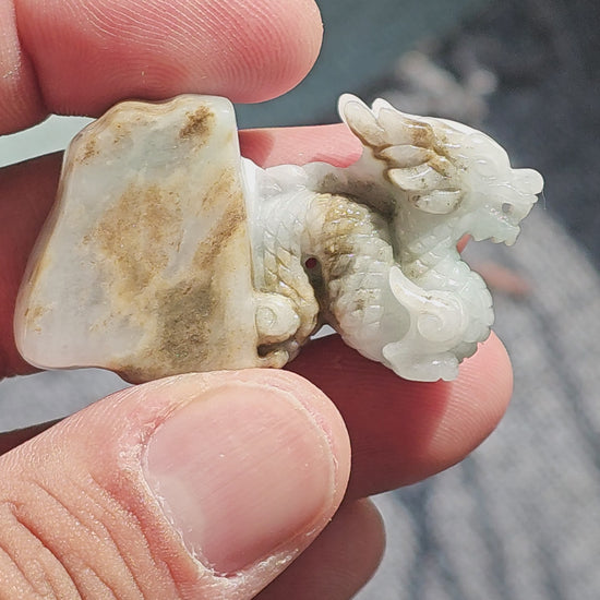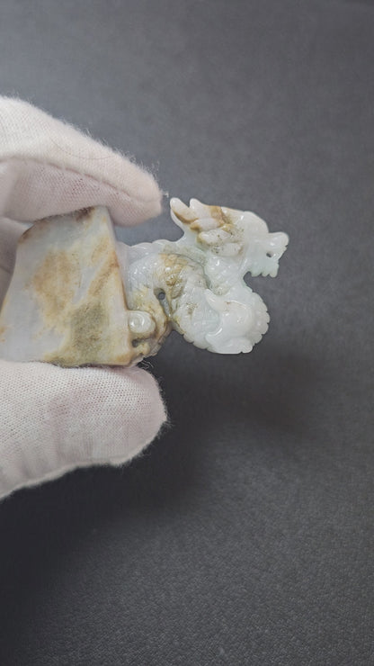 Origins of the Imperious Burmese A-Jadeite Dragon Decoration Ornament - Certified