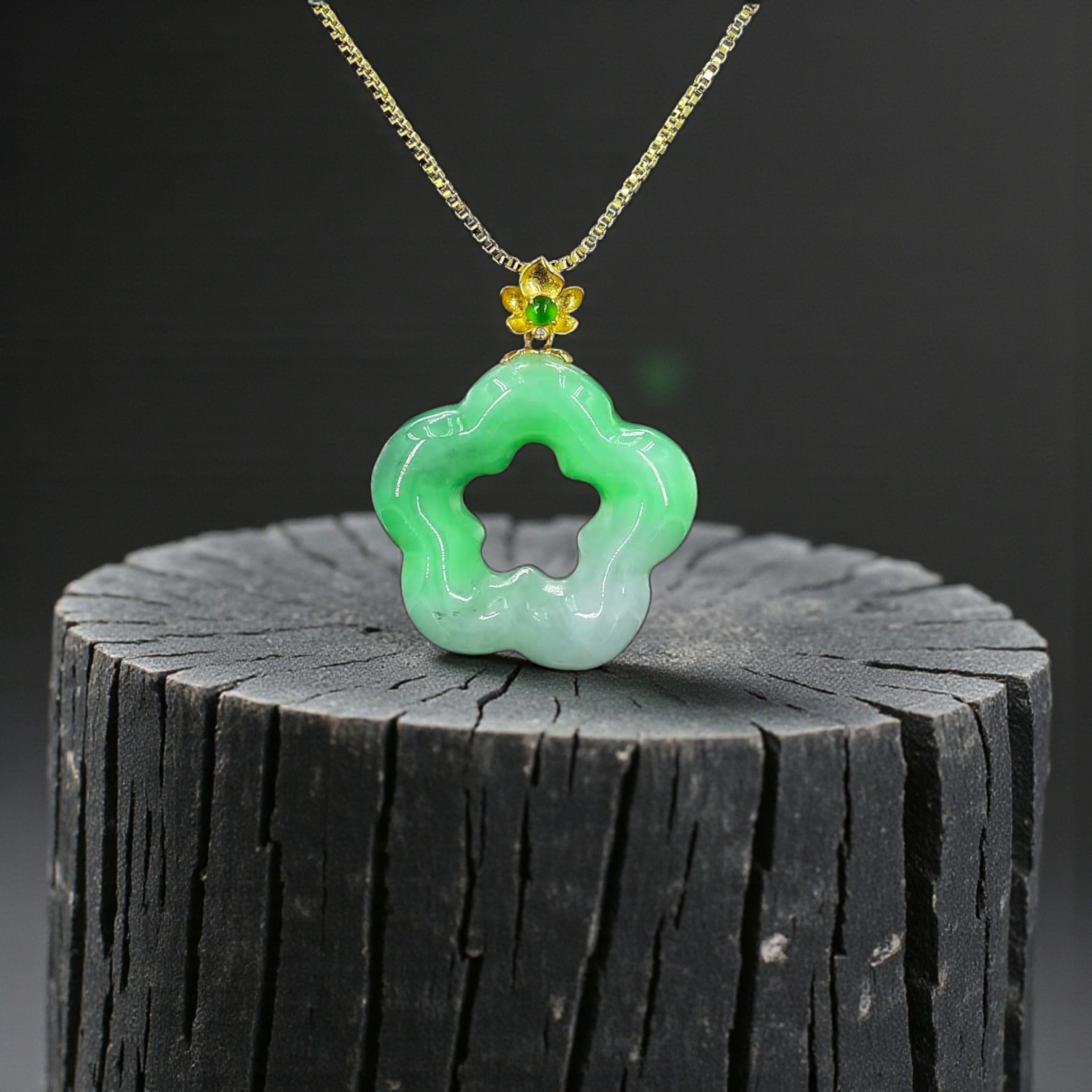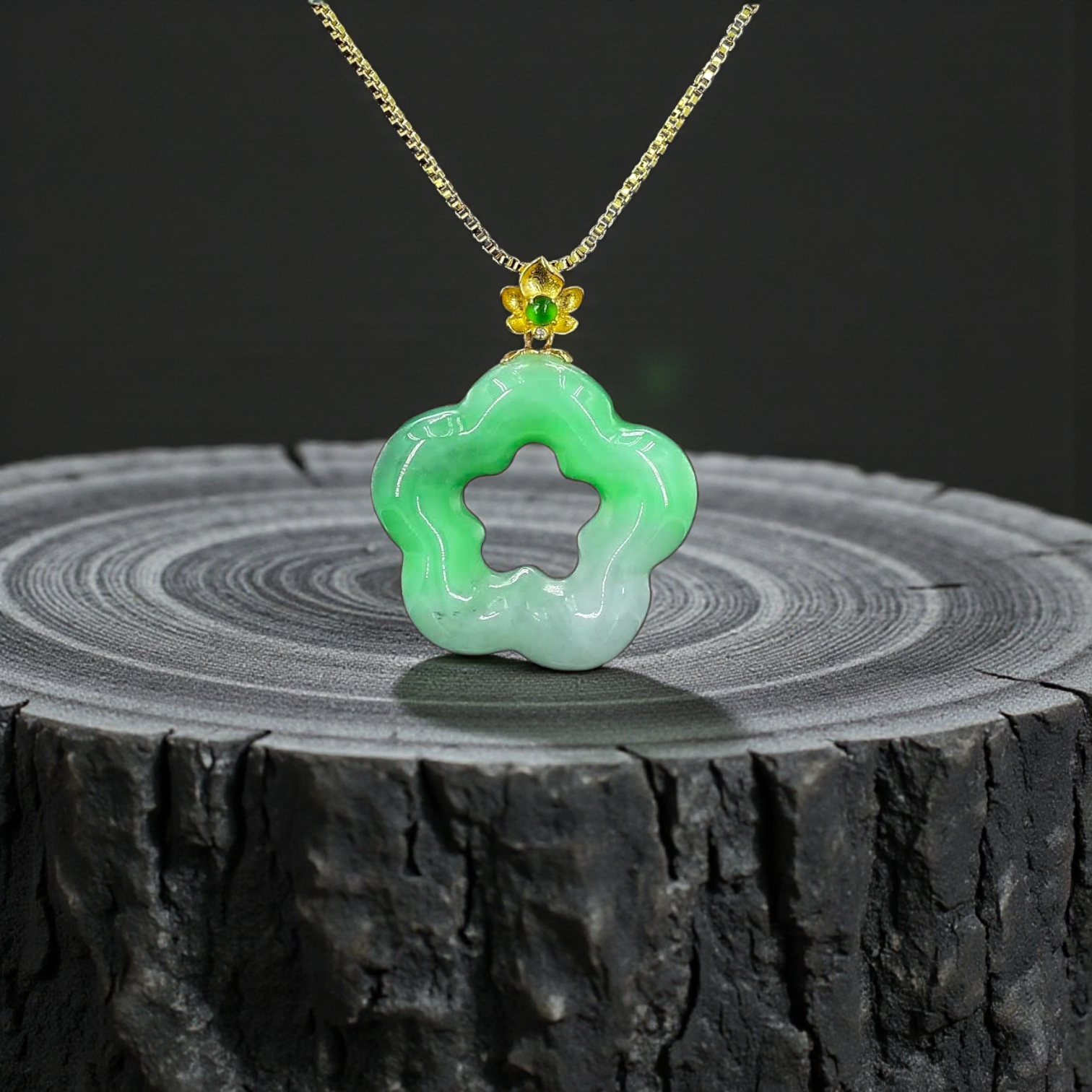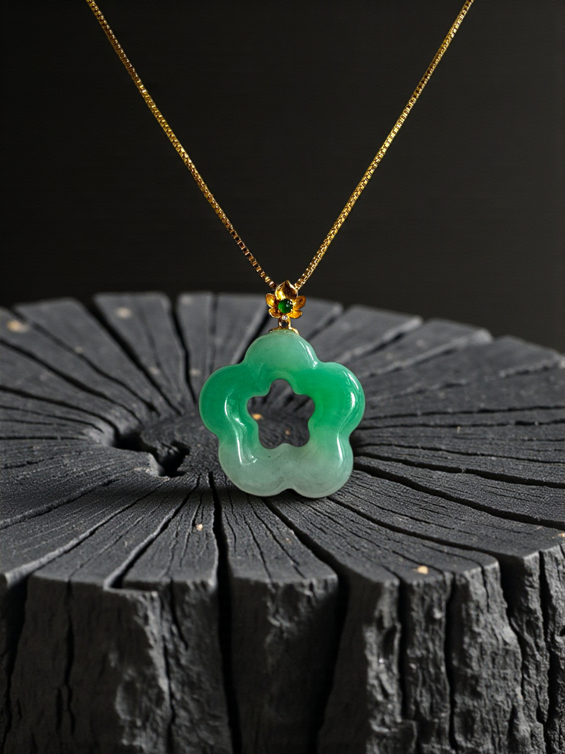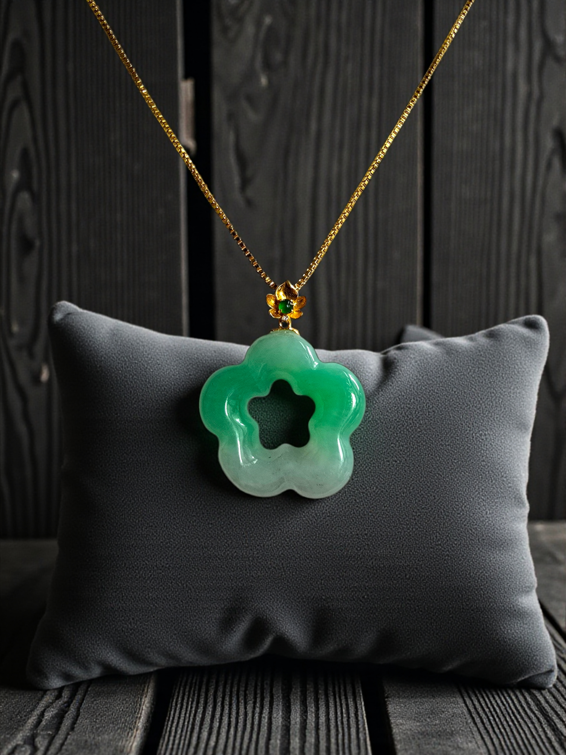 Royal Bauhinia Flower Bright Green Burmese A-Jadeite 20mm Charm Pendant (with 18K Yellow Gold) - Certified