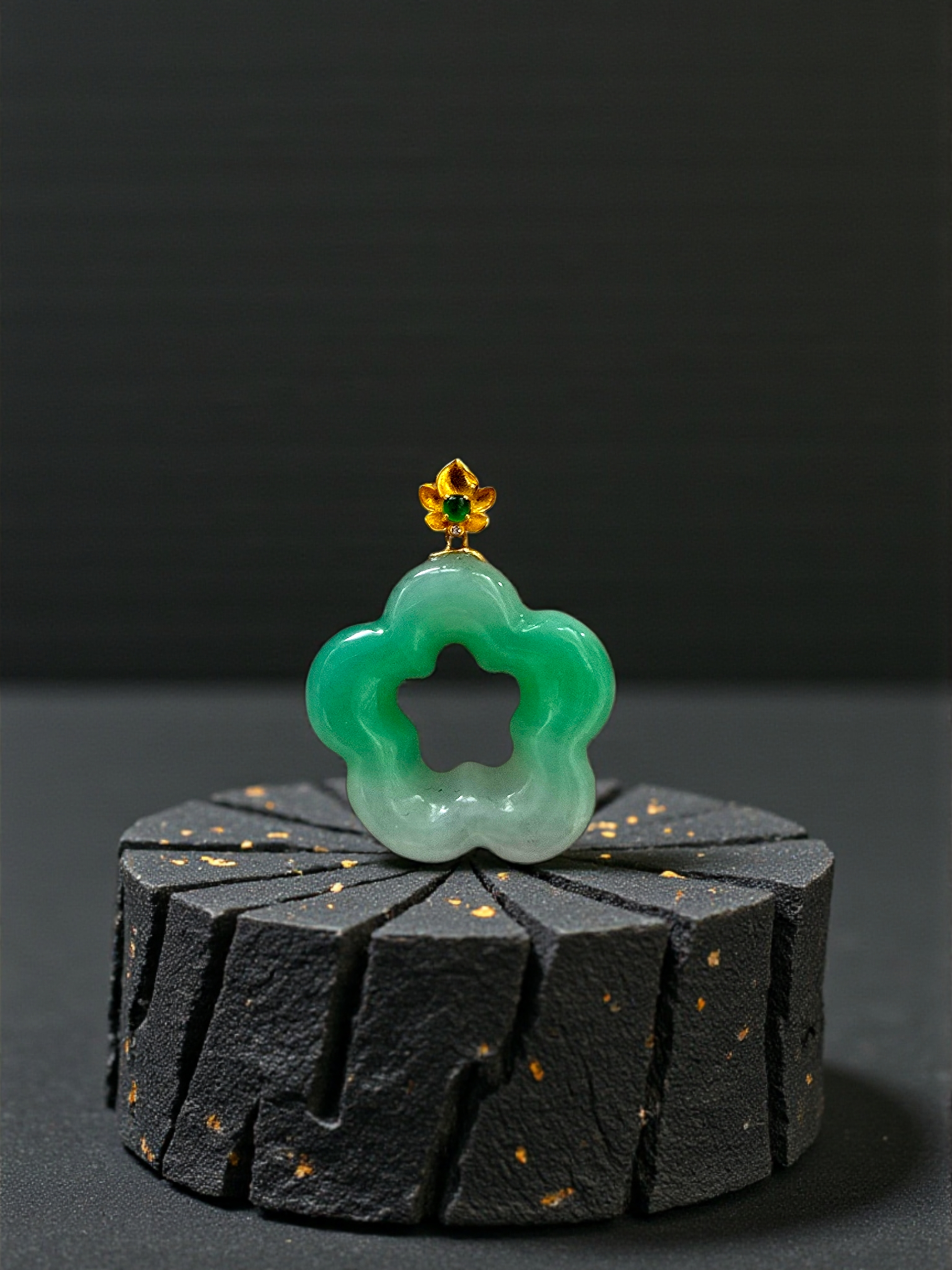 Royal Bauhinia Flower Burmese A-Jadeite 20mm Charm Pendant (with 18K Yellow Gold) - Certified