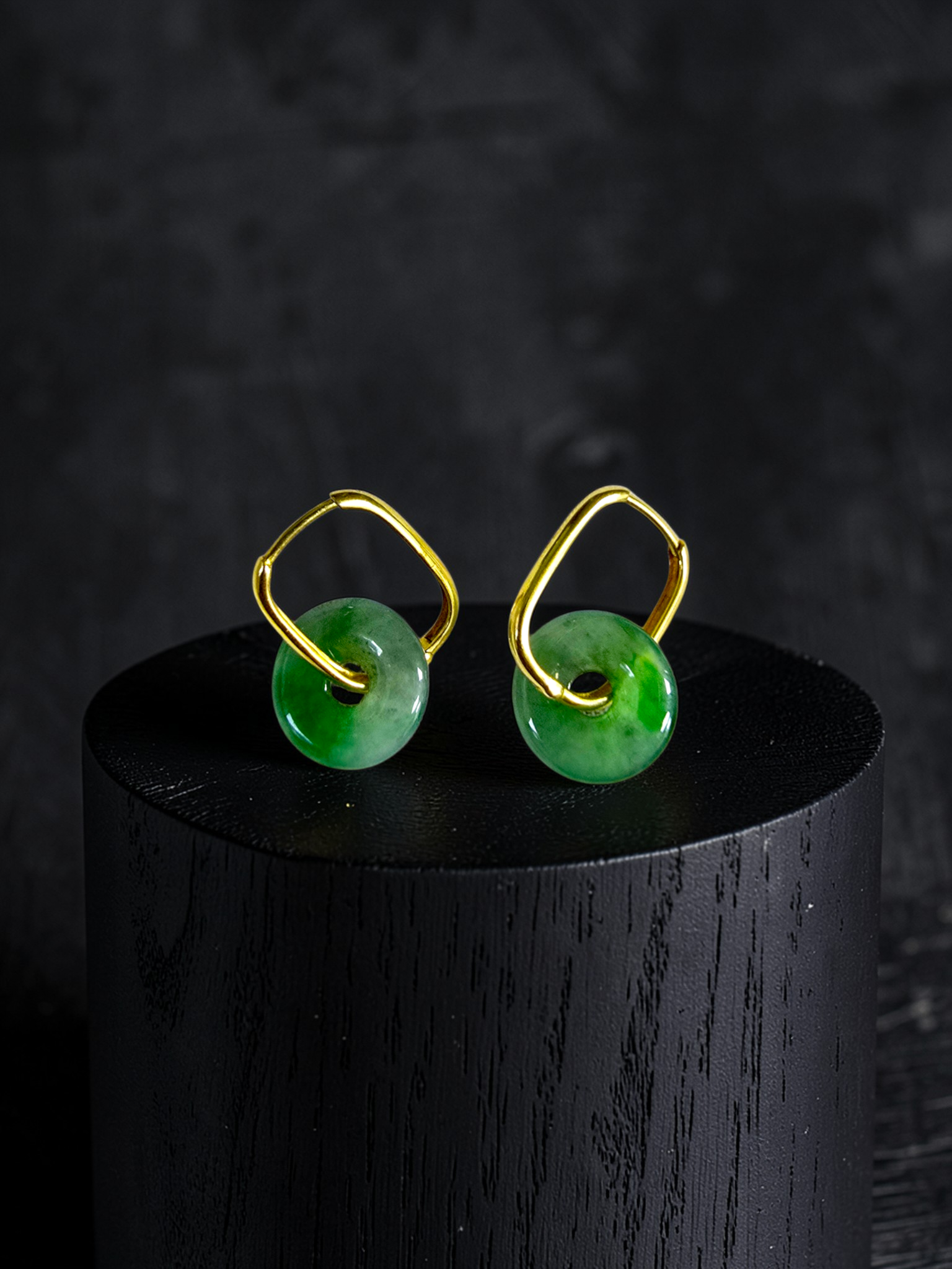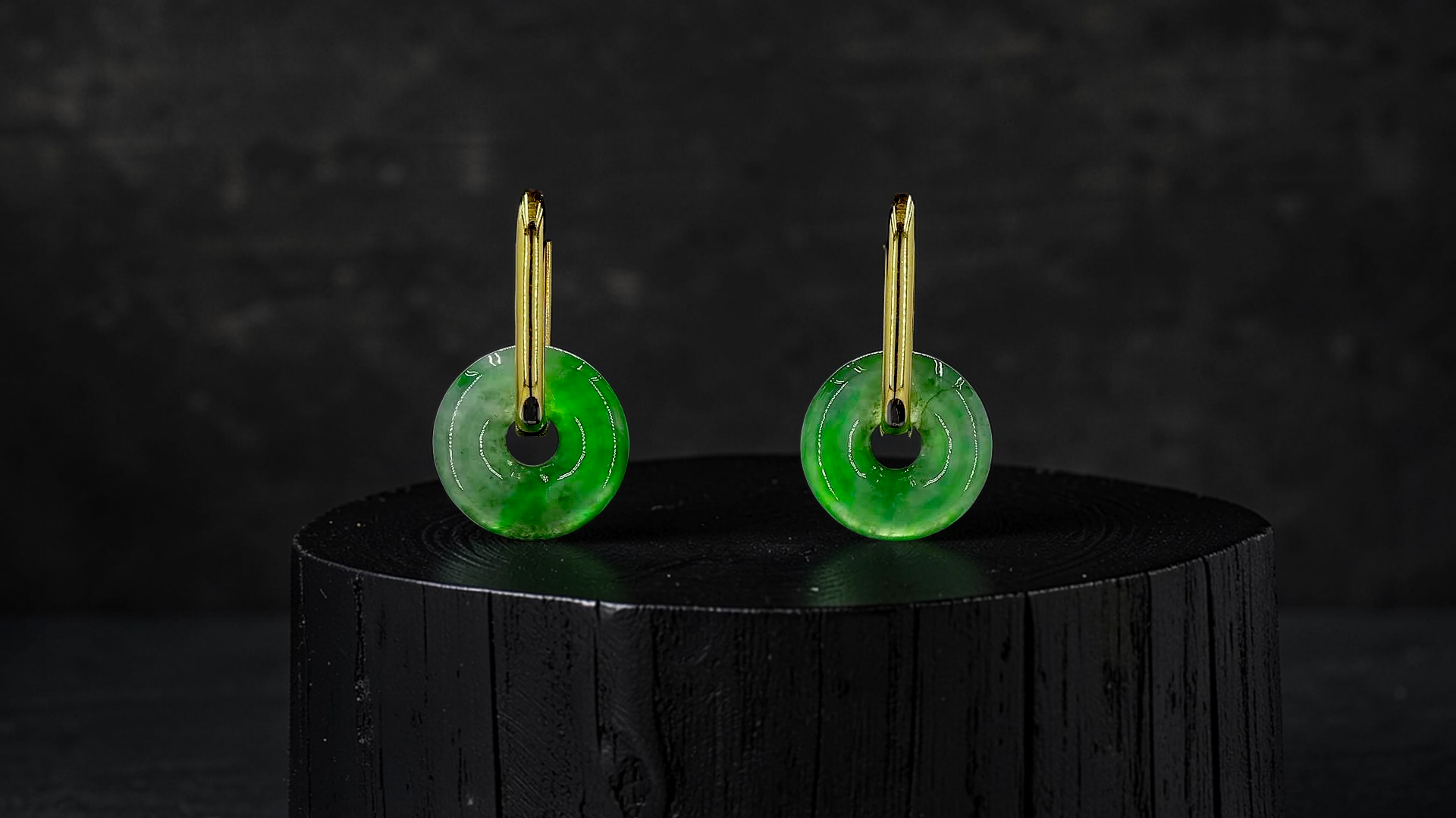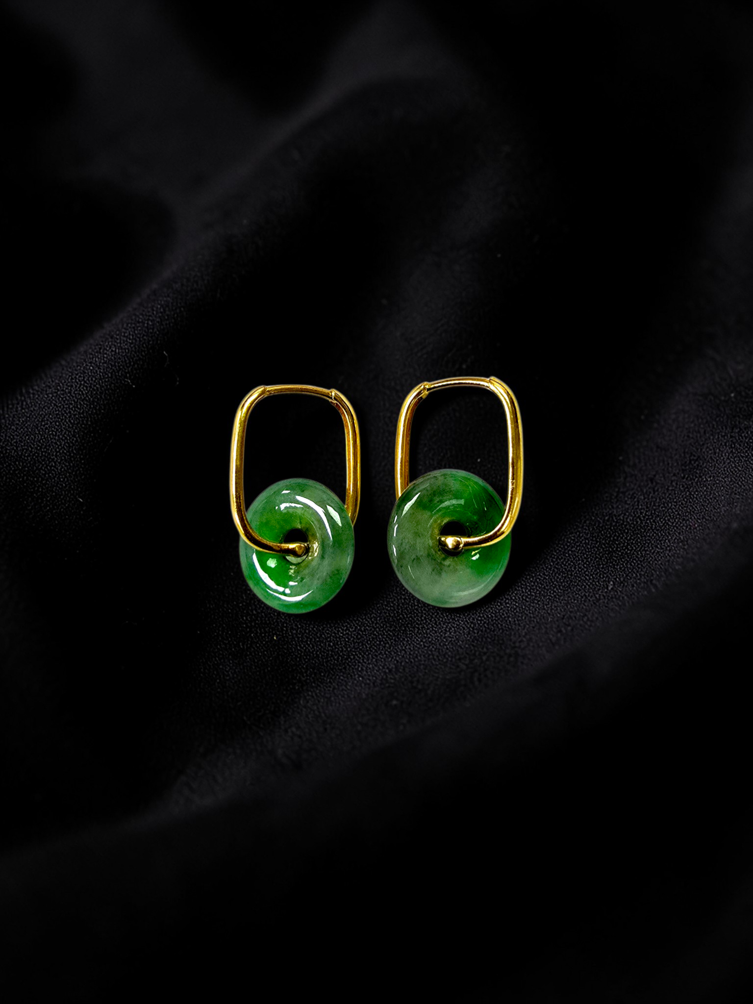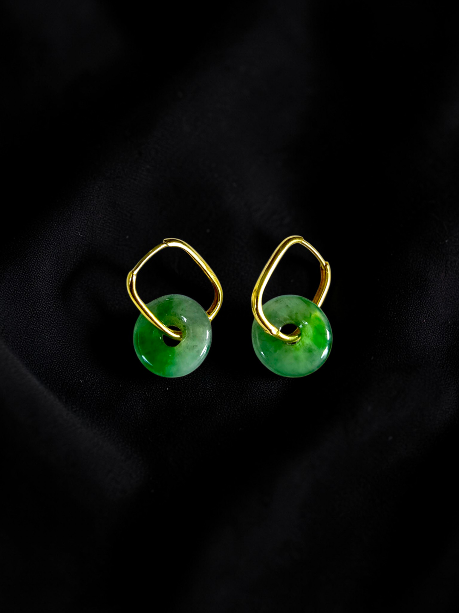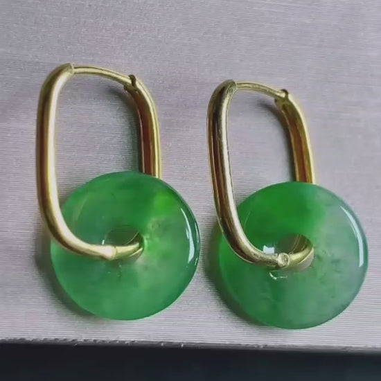 Tokoname Dangling Donut Bright Icy Green Burmese A-Jade Earrings (with 18K Yellow Gold) - Certified