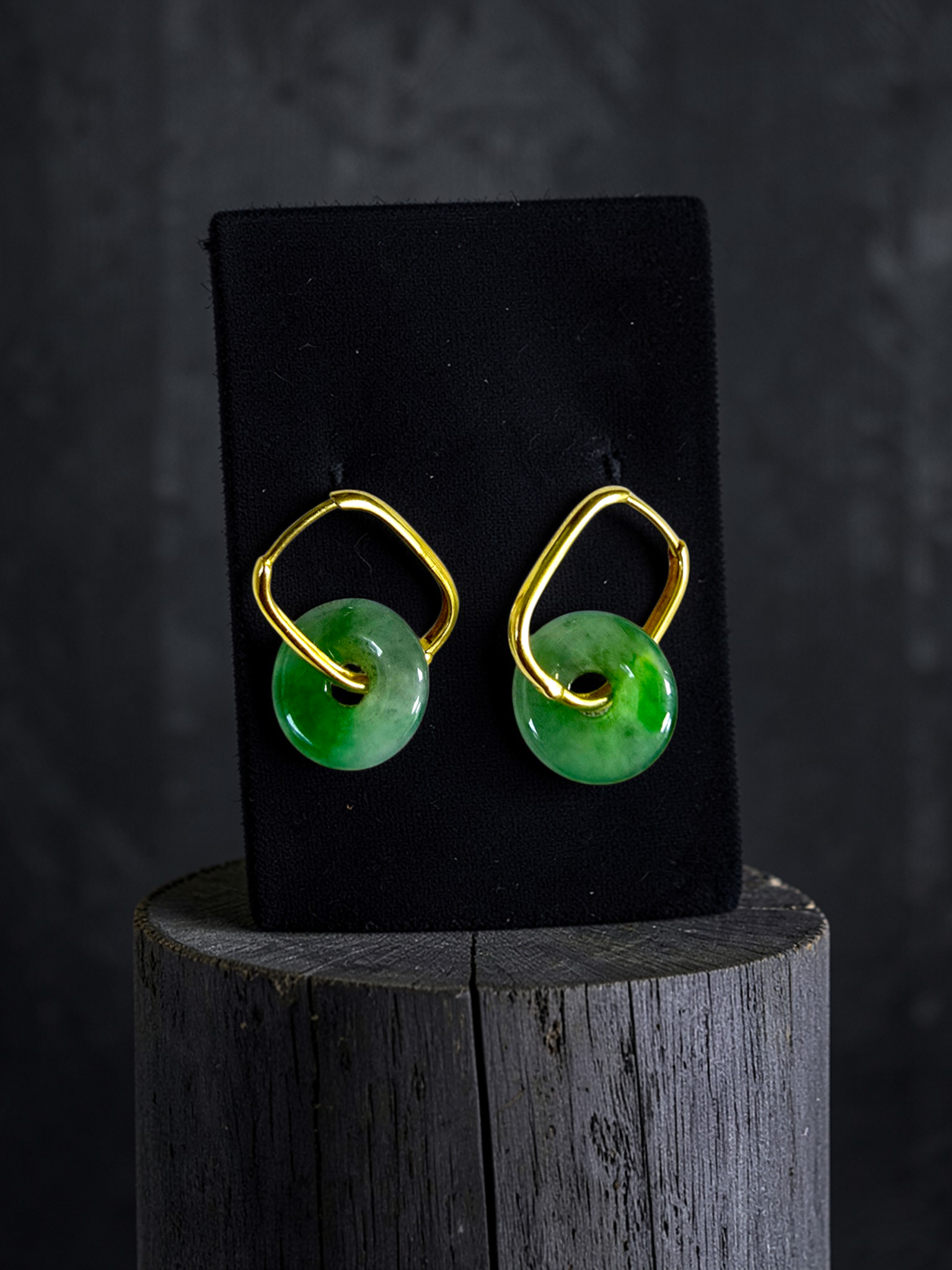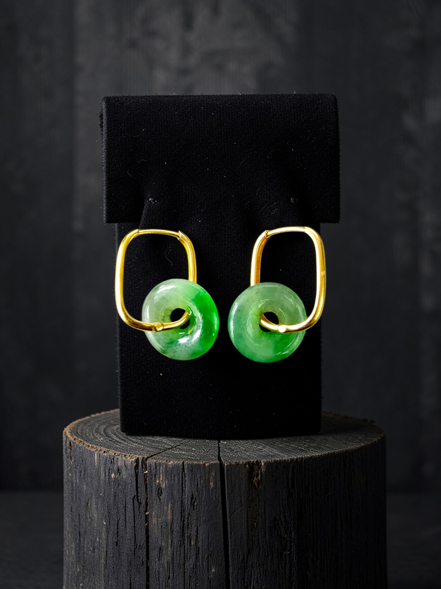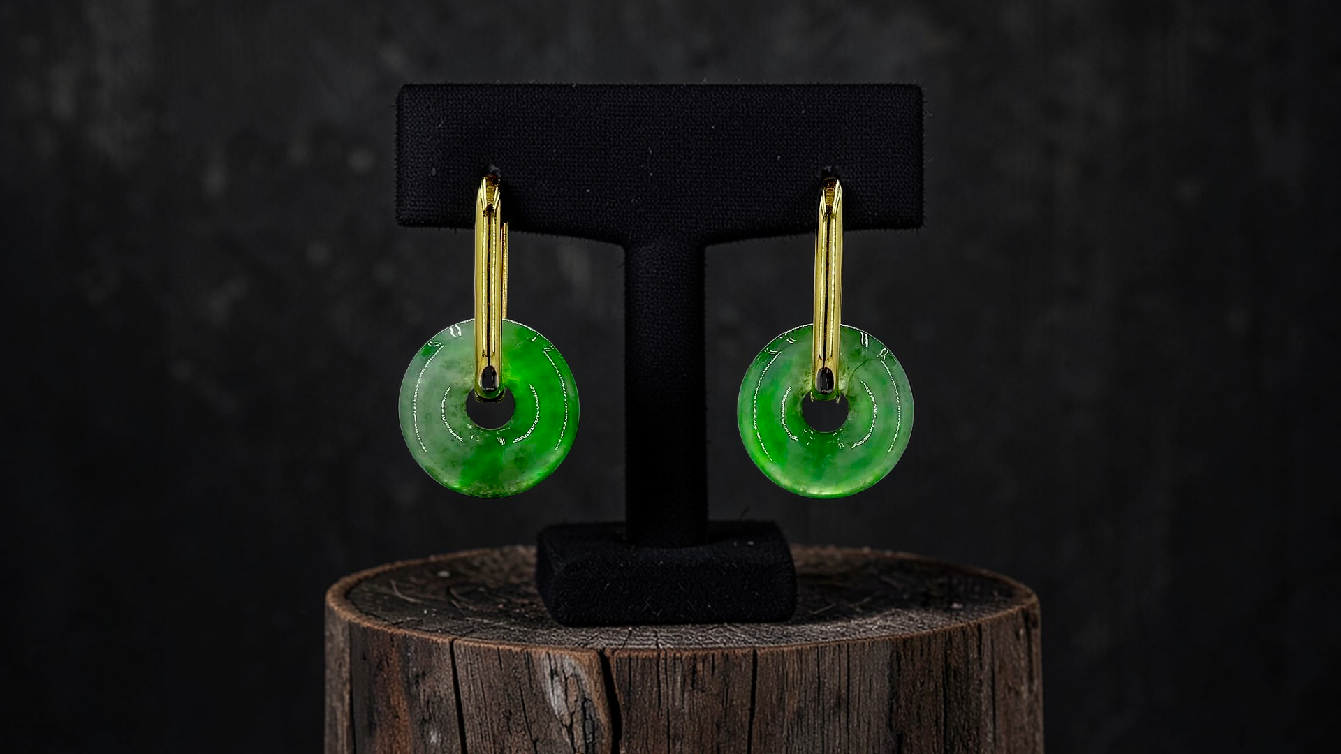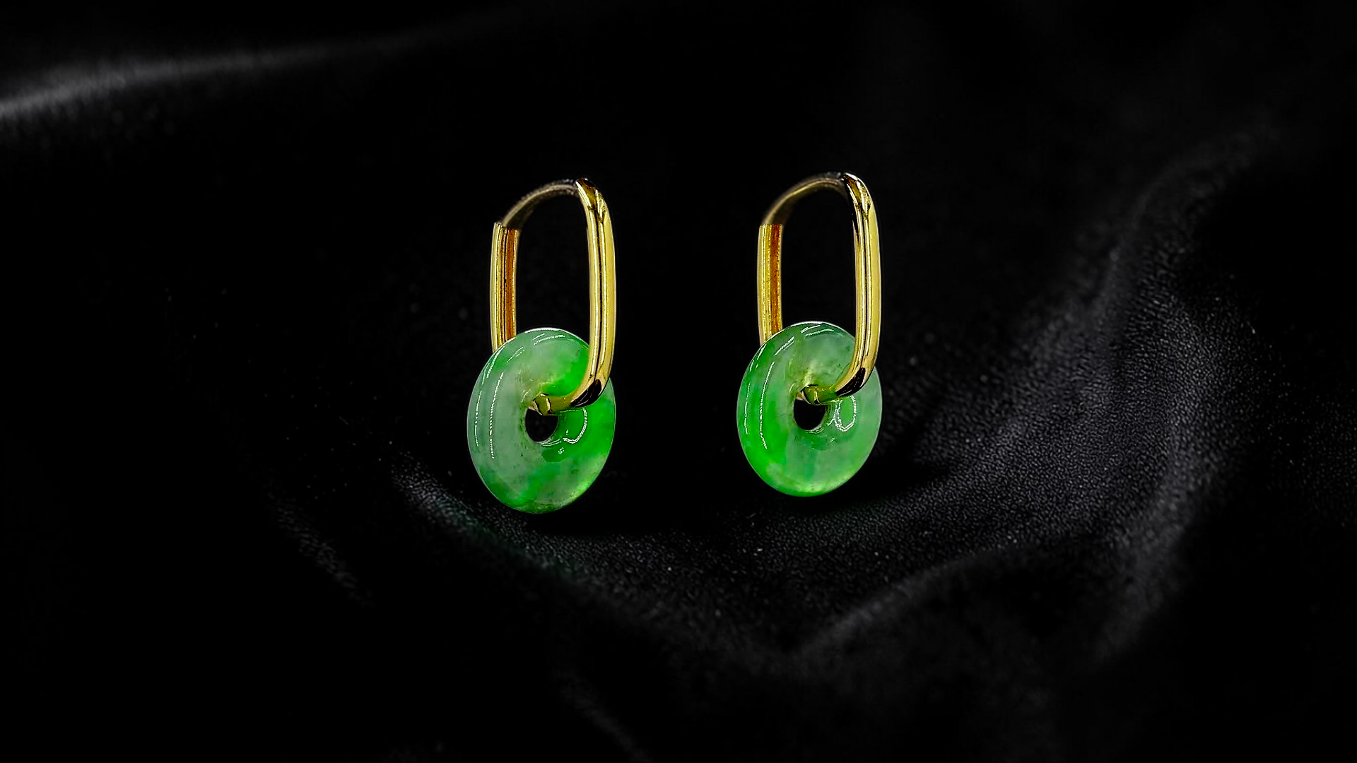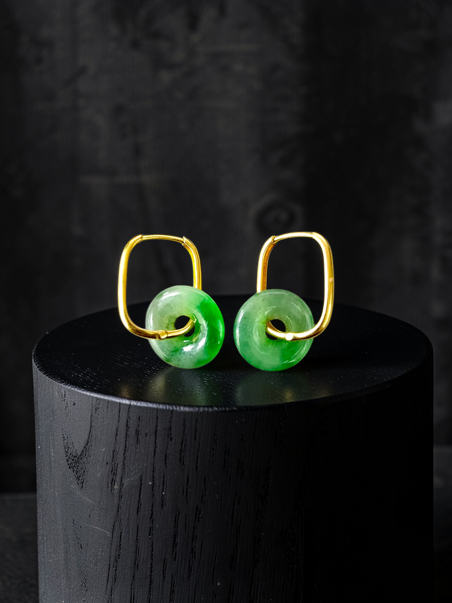 Tokoname Dangling Donut Bright Icy Green Burmese A-Jade Earrings (with 18K Yellow Gold) - Certified