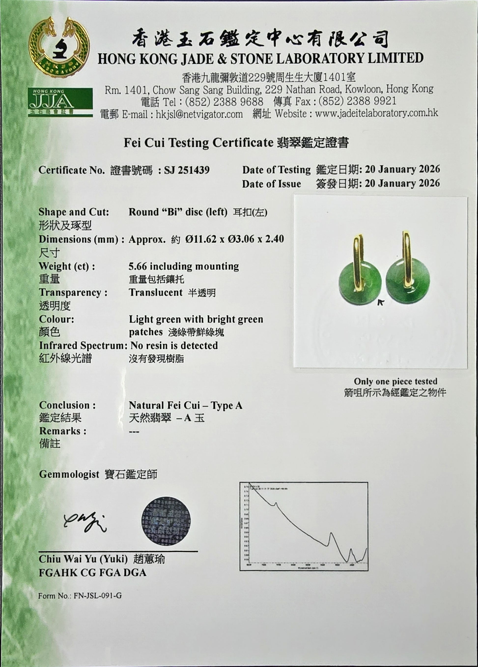 Materials: Burmese A-Jadeite, 1.20g 18K Yellow Gold