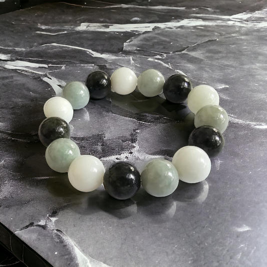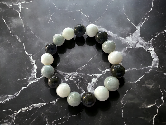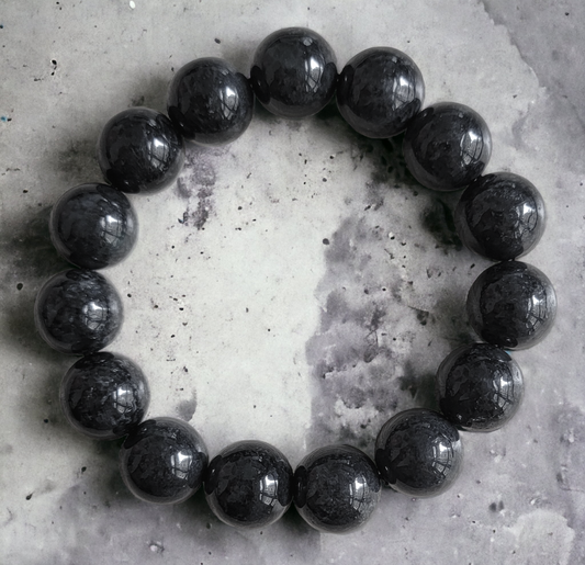 緬甸皇家黑玉串珠手鍊(每顆 14 毫米 x 15 顆珠子)