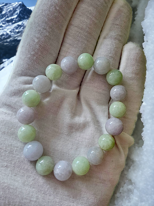 帝王綠和薰衣草緬甸 A 種翡翠串珠手鍊(每顆 10-11 毫米 x 18 顆珠子)07002