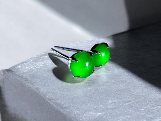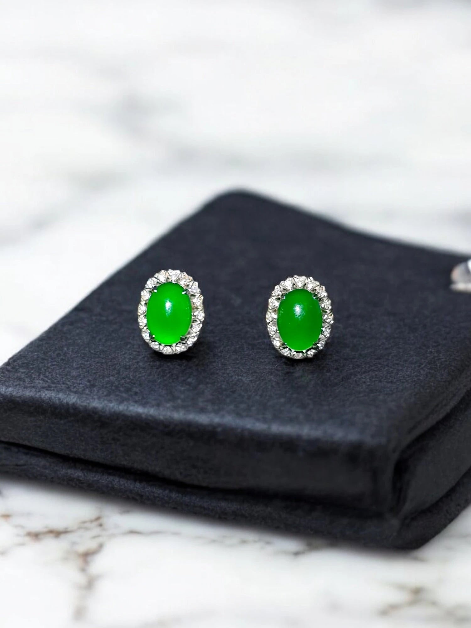Vert Imperial Green Burmese A-Jade Stud Earrings (with 18K White Gold) - Certified