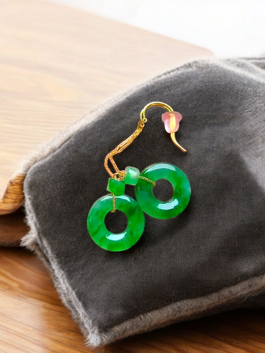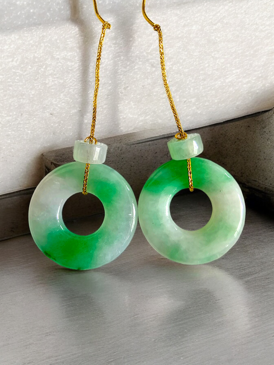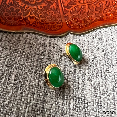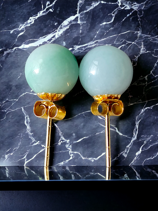 永恆之珠 18K 黃金緬甸 A 玉耳釘 12 毫米 18002