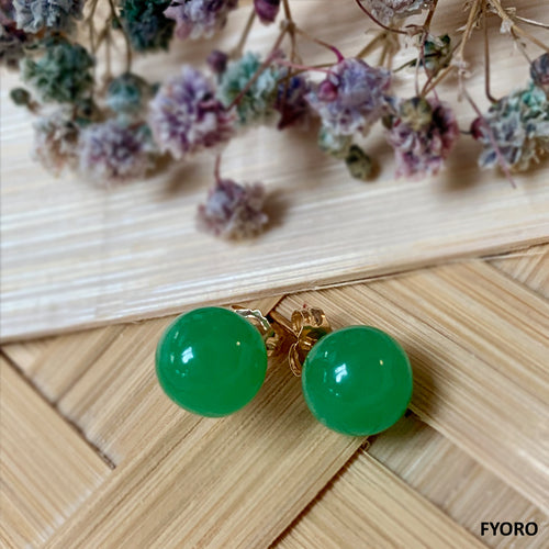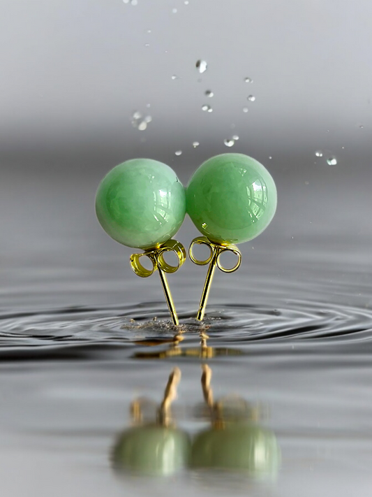 Harmony Burmese Green A-Jade 10mm Beaded Stud Earrings (with 18K Yellow Gold)