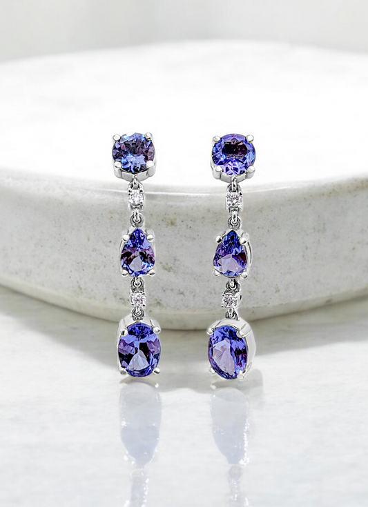 Australian Opal Drop and Dangle Earrings with 14K White Gold and White Diamonds - 3002