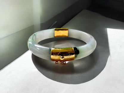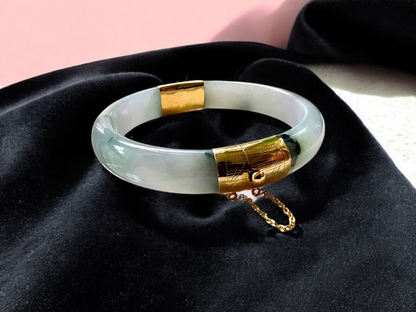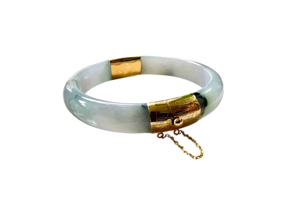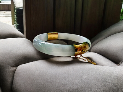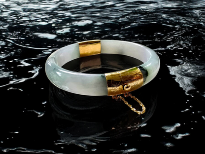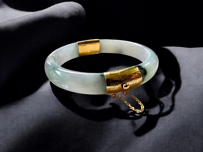 1884 Viceroy's Elliptical Burmese A-Jade Bangle Bracelet (with 14K Yellow Gold)