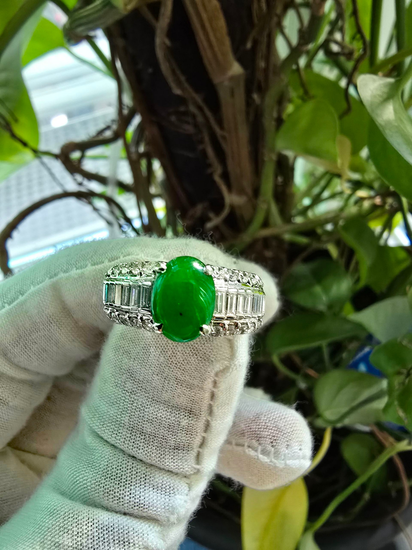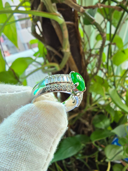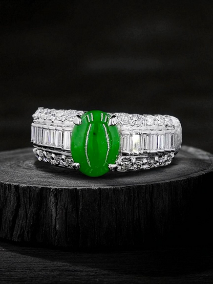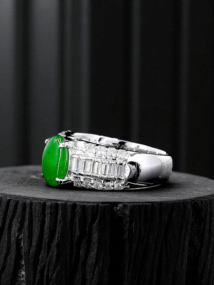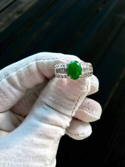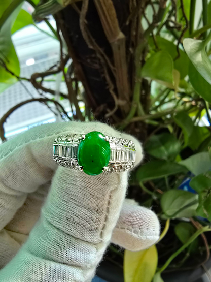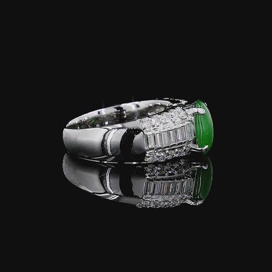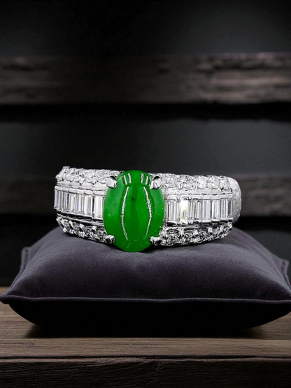 Akasaka MADE IN JAPAN Burmese A Jade Statement Ring, with Natural White Diamonds, and Platinum 900 - HKJSl Certified