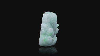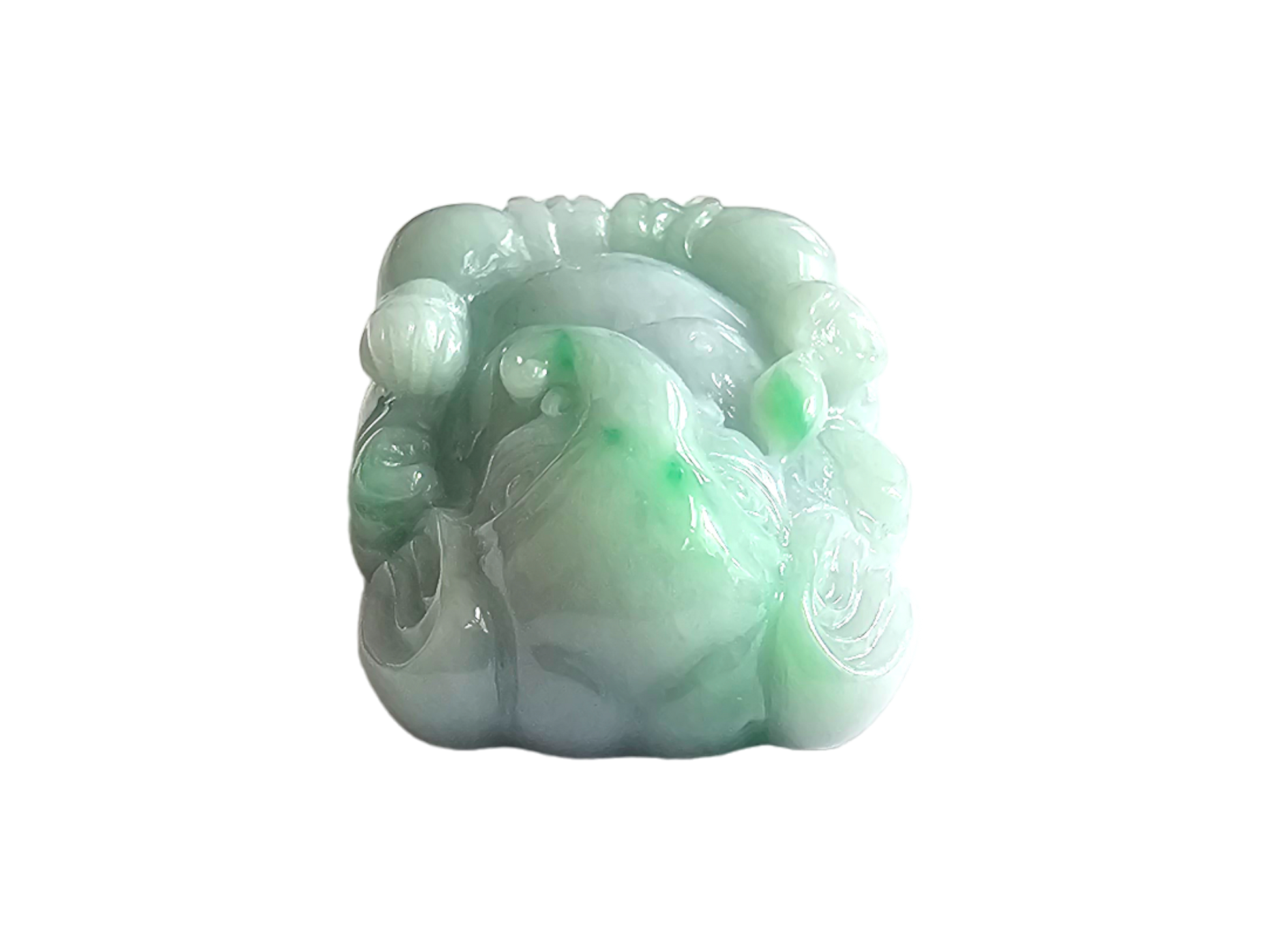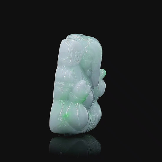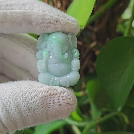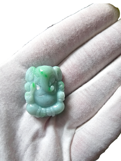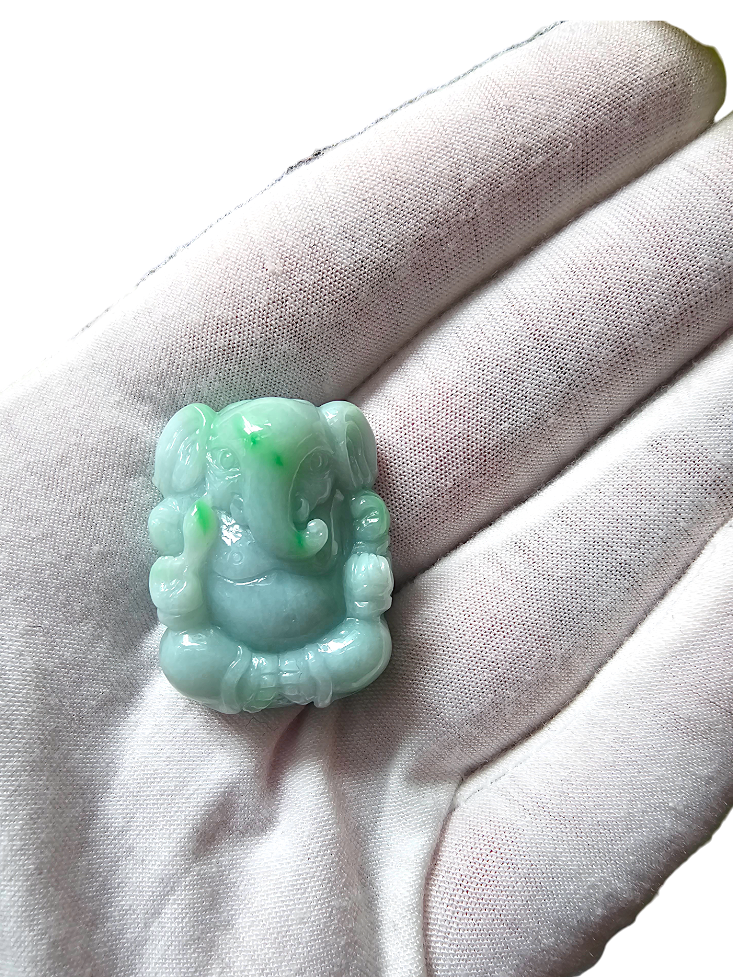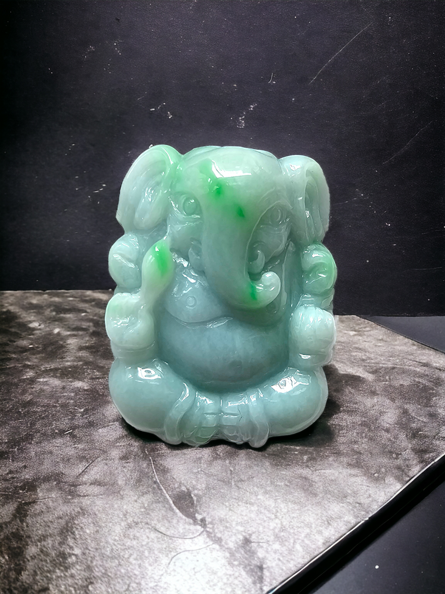 我們的「催化劑甘尼薩」是印度教新開端的神祇,由精選最稀有的緬甸 A 級翡翠打造而成,具有最佳的半透明度、色調、色調和綠色飽和度。我們使用自然且最令人嚮往的帝王綠色條紋來強調象頭神甘納帕蒂勳爵的某些元素。象徵新的開始、財富、智慧和繁榮。