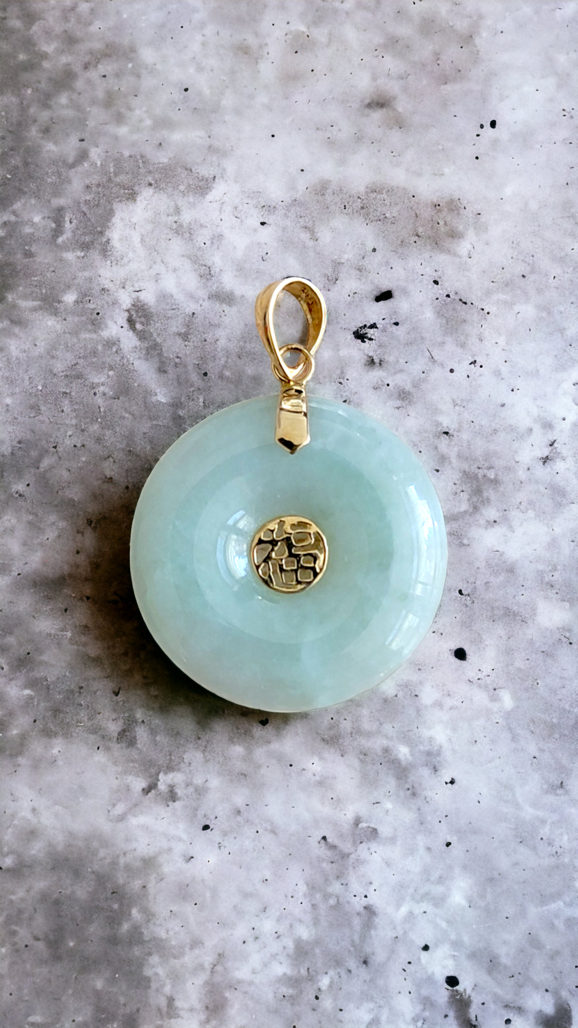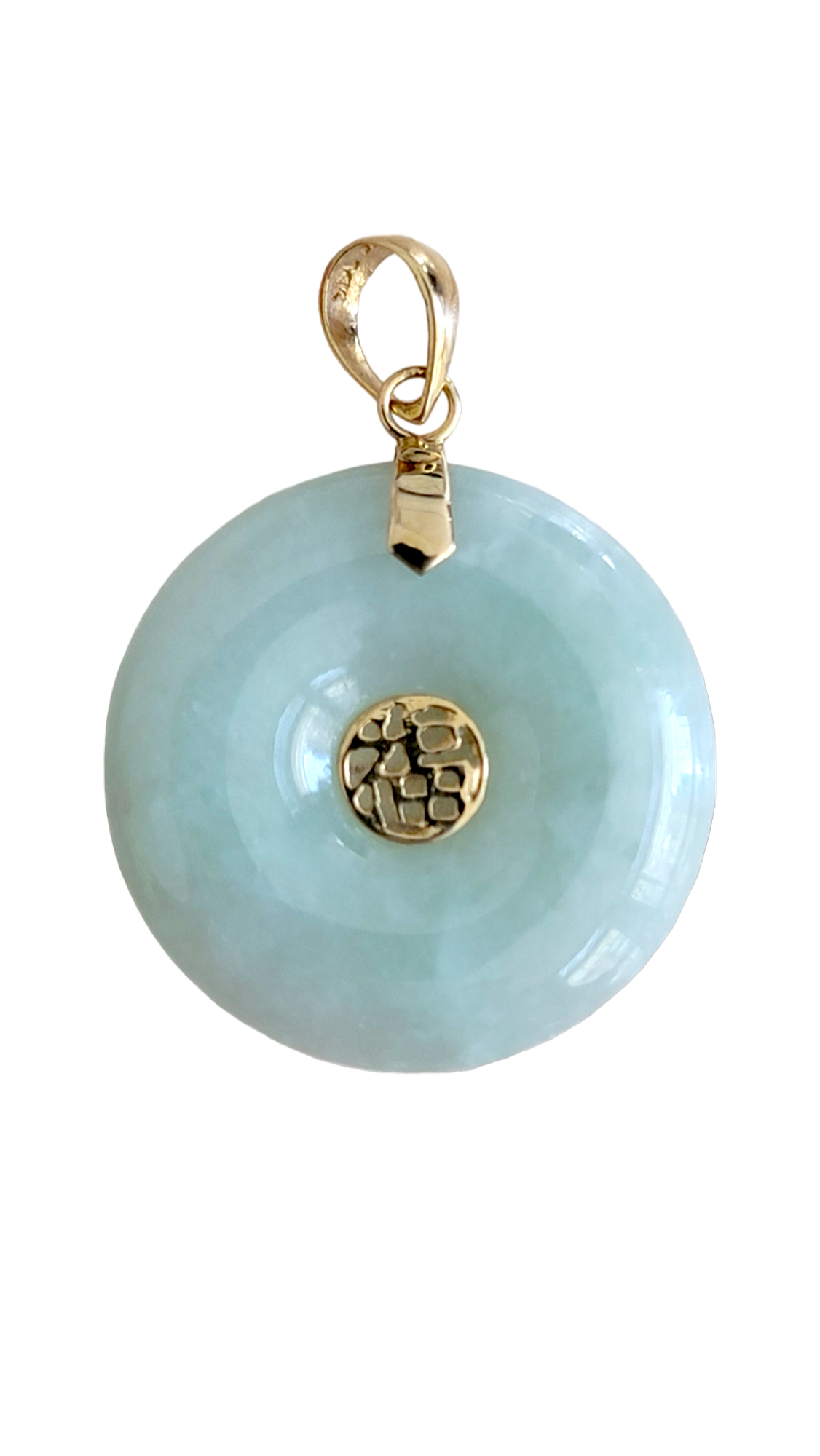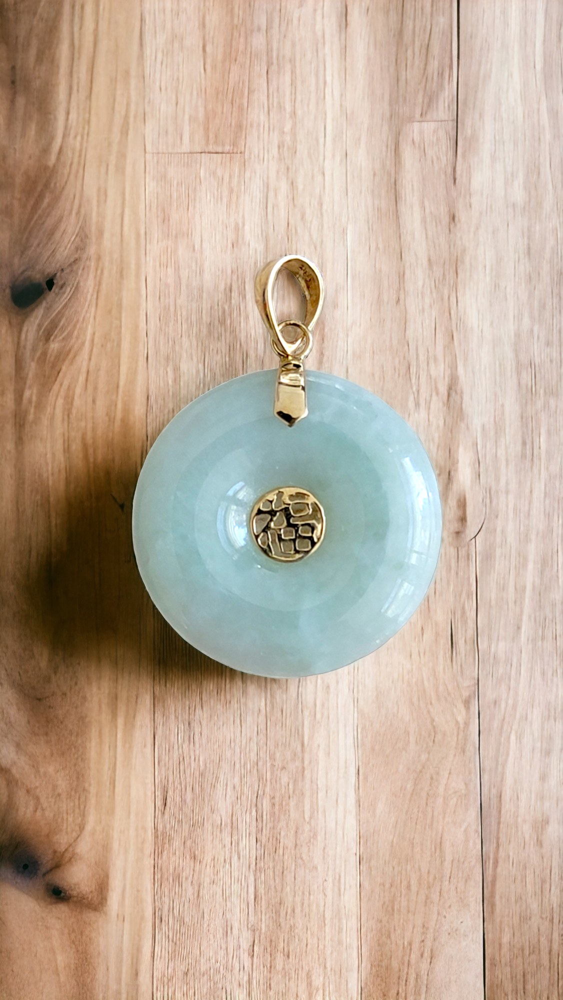 Fu Fuku 財富中 14K 金緬甸玉吊墜