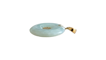 採用我們經典的福福福財鐘設計,我們用完全未經處理的天然緬甸翡翠製作了這款吊墜,並以 14K 金製成了福字。