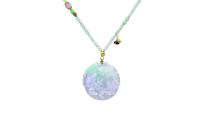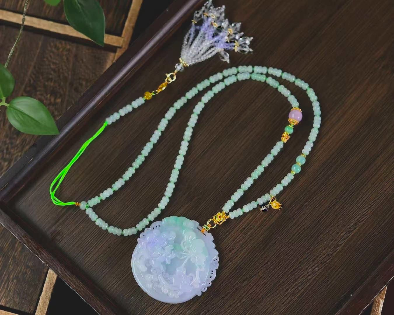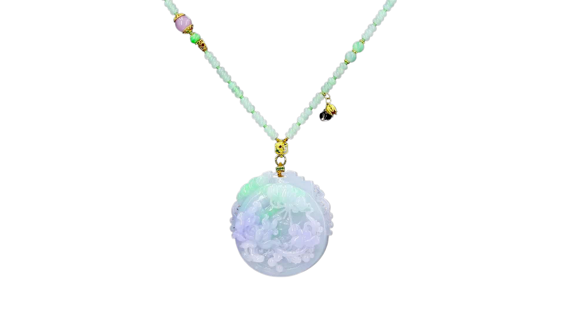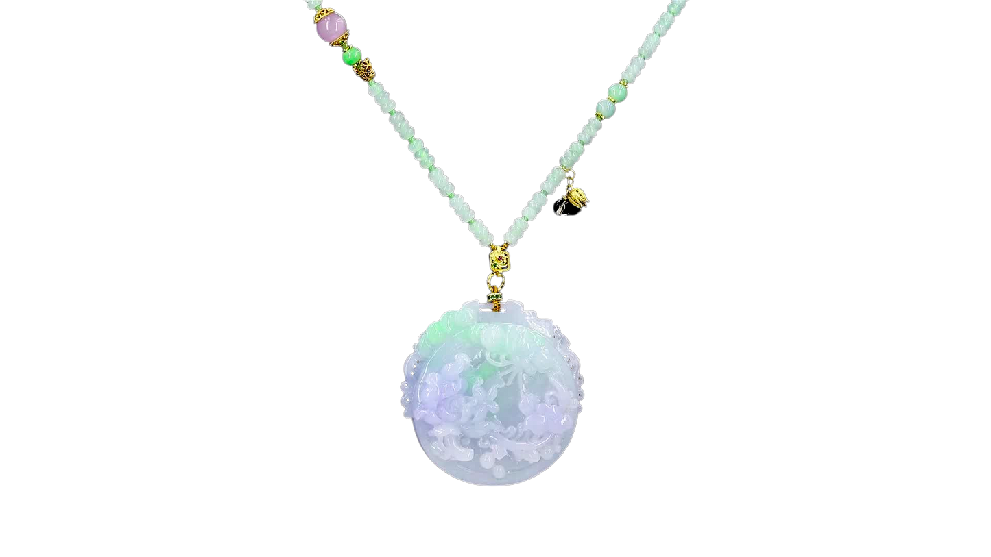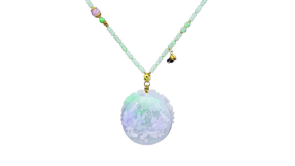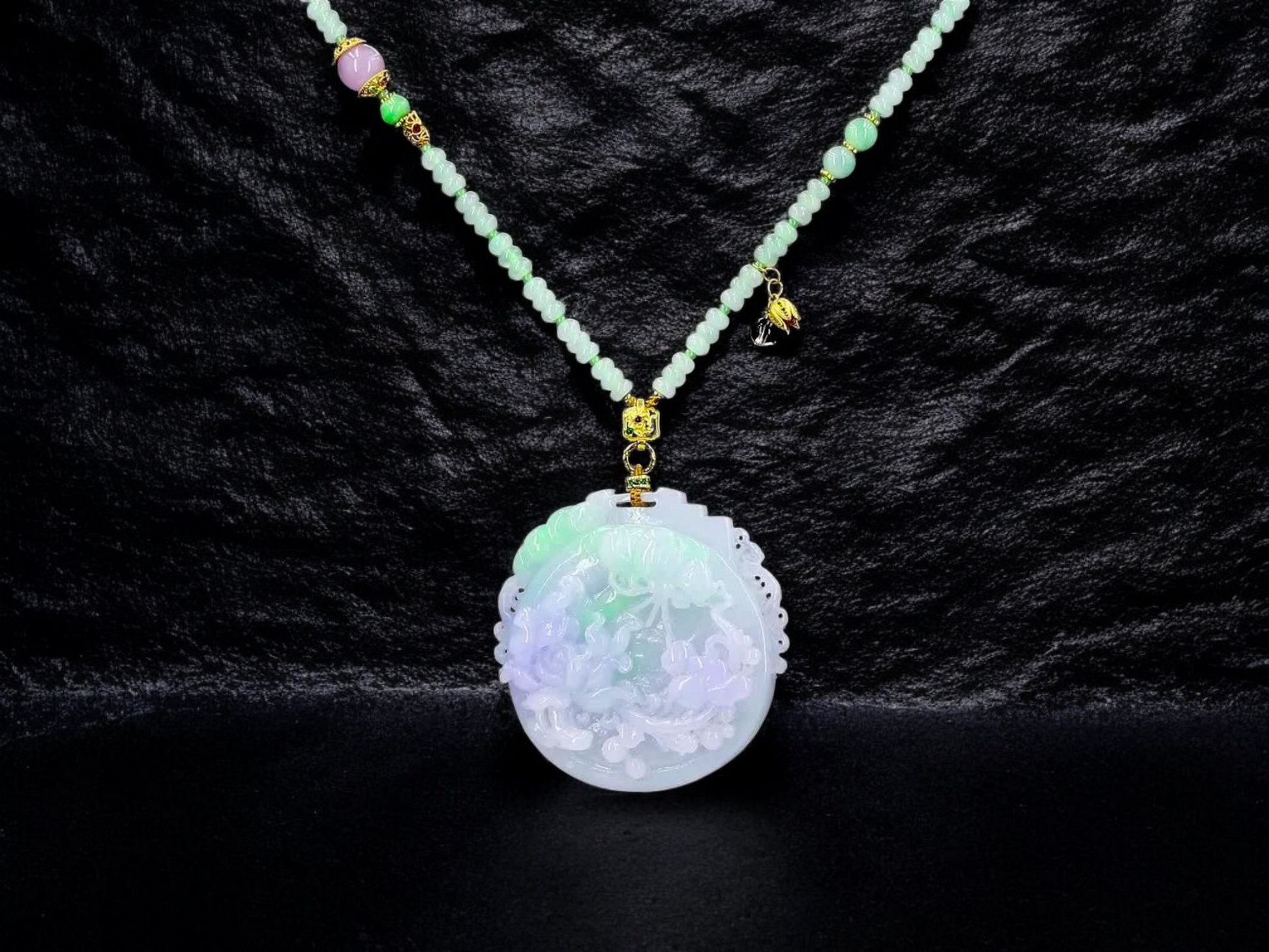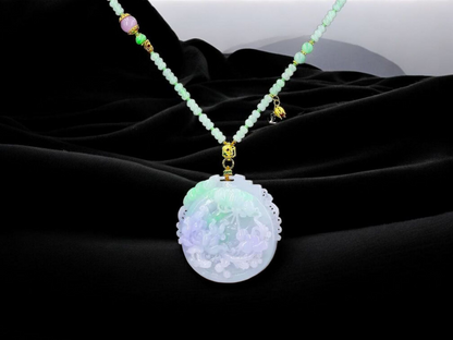 Kenrokuen Garden Lavender and Green Burmese A Jade Necklace and Detachable Hand Carved Pendant with Silver 925 - HKJSL Certified