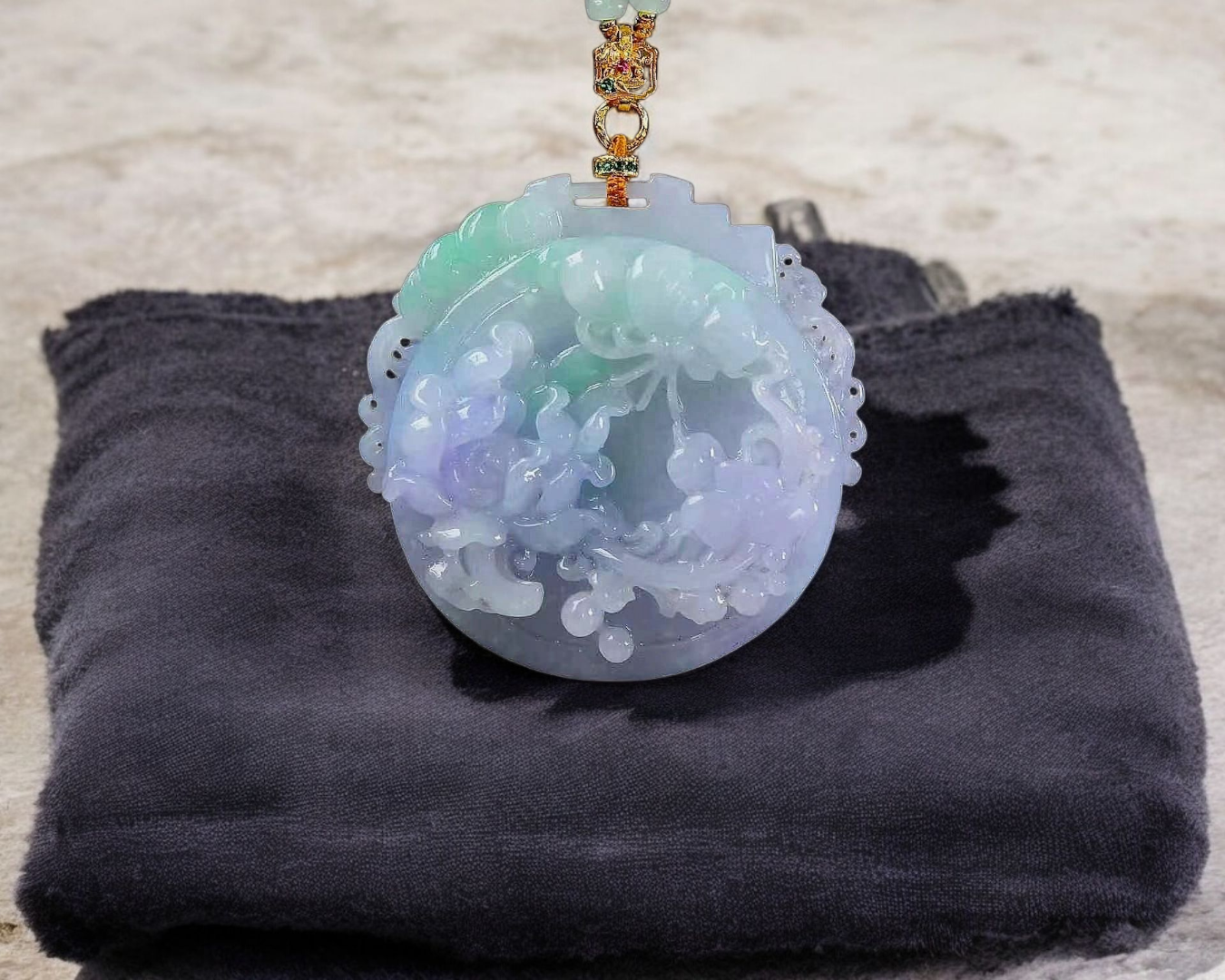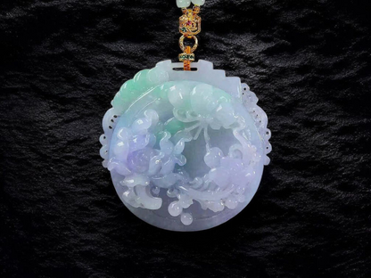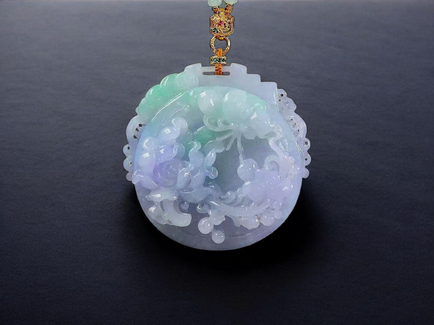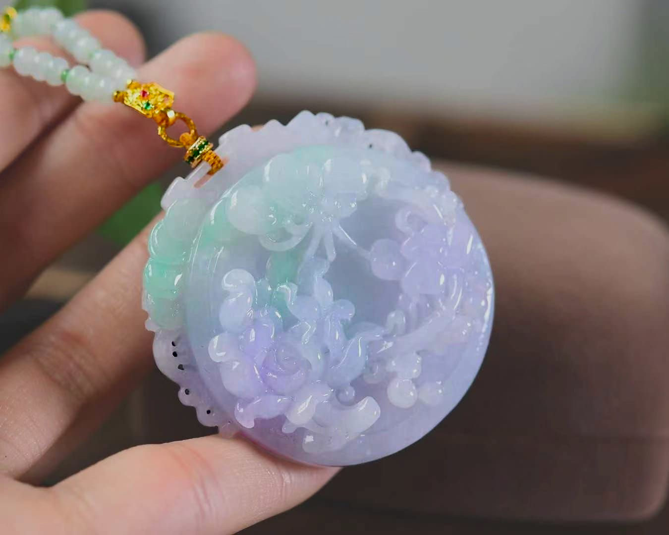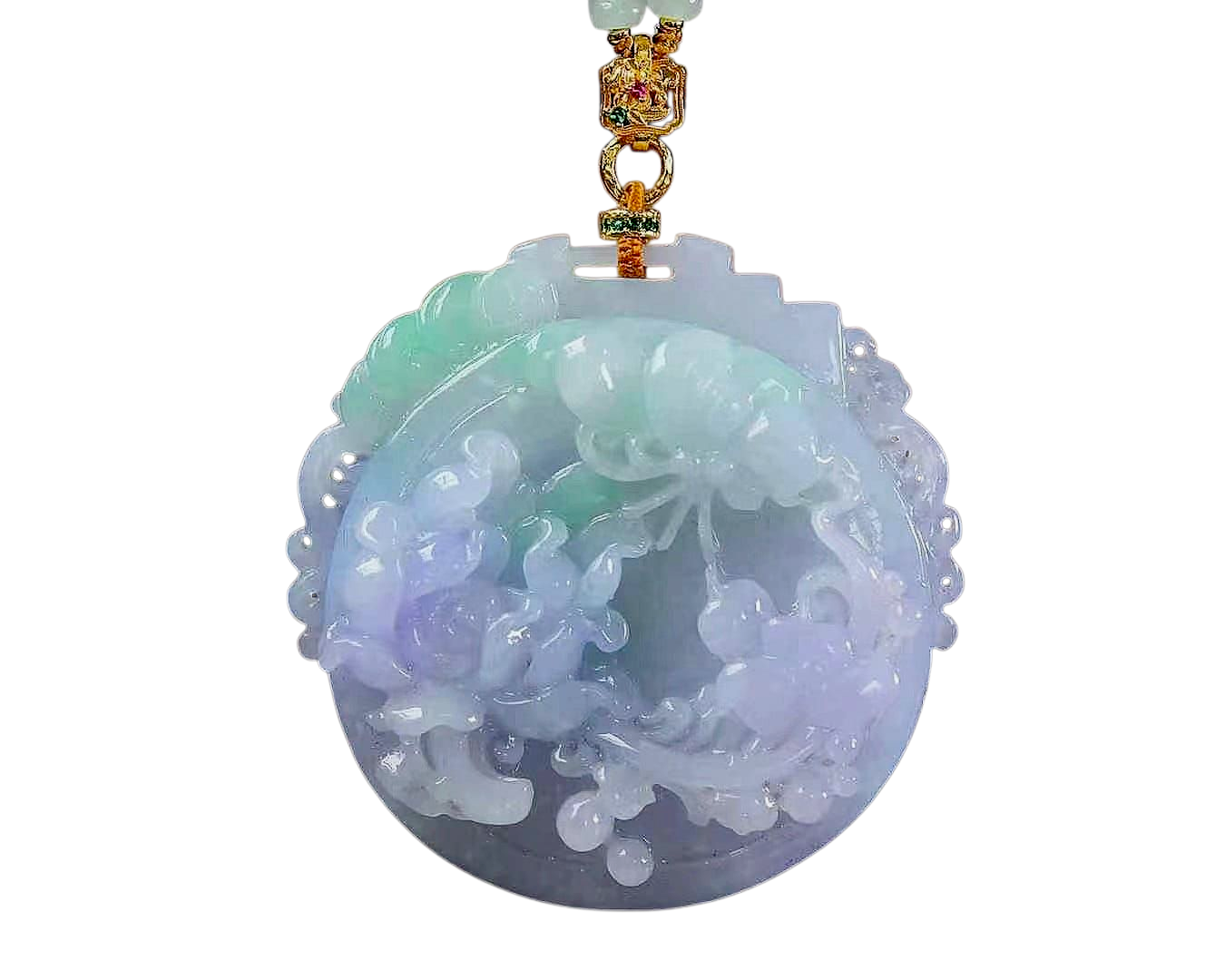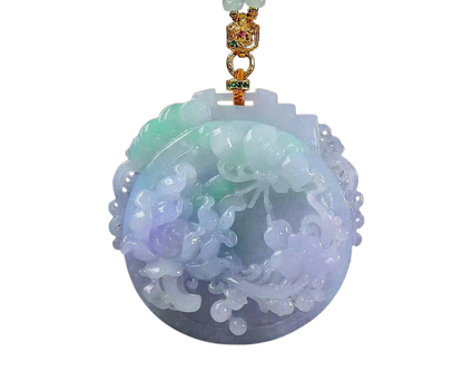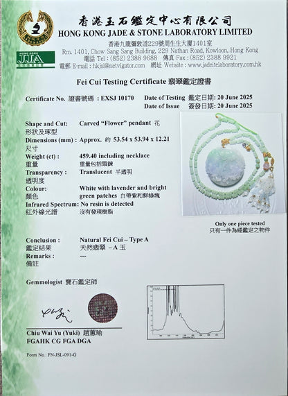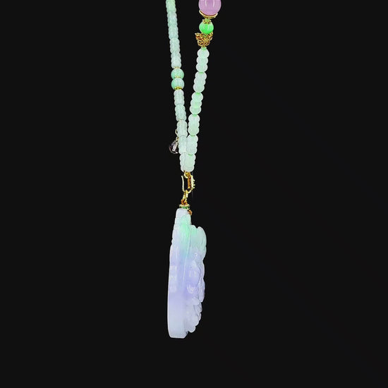 Kenrokuen Garden Lavender and Green Burmese A Jade Necklace and Detachable Hand Carved Pendant with Silver 925 - HKJSL Certified