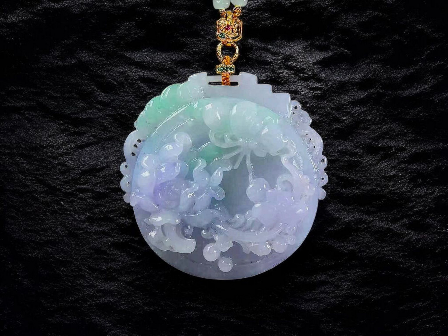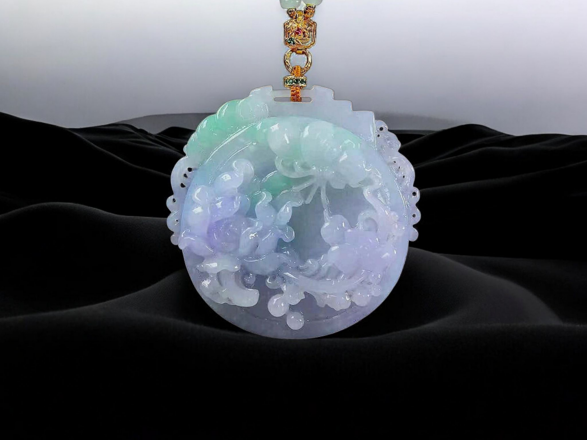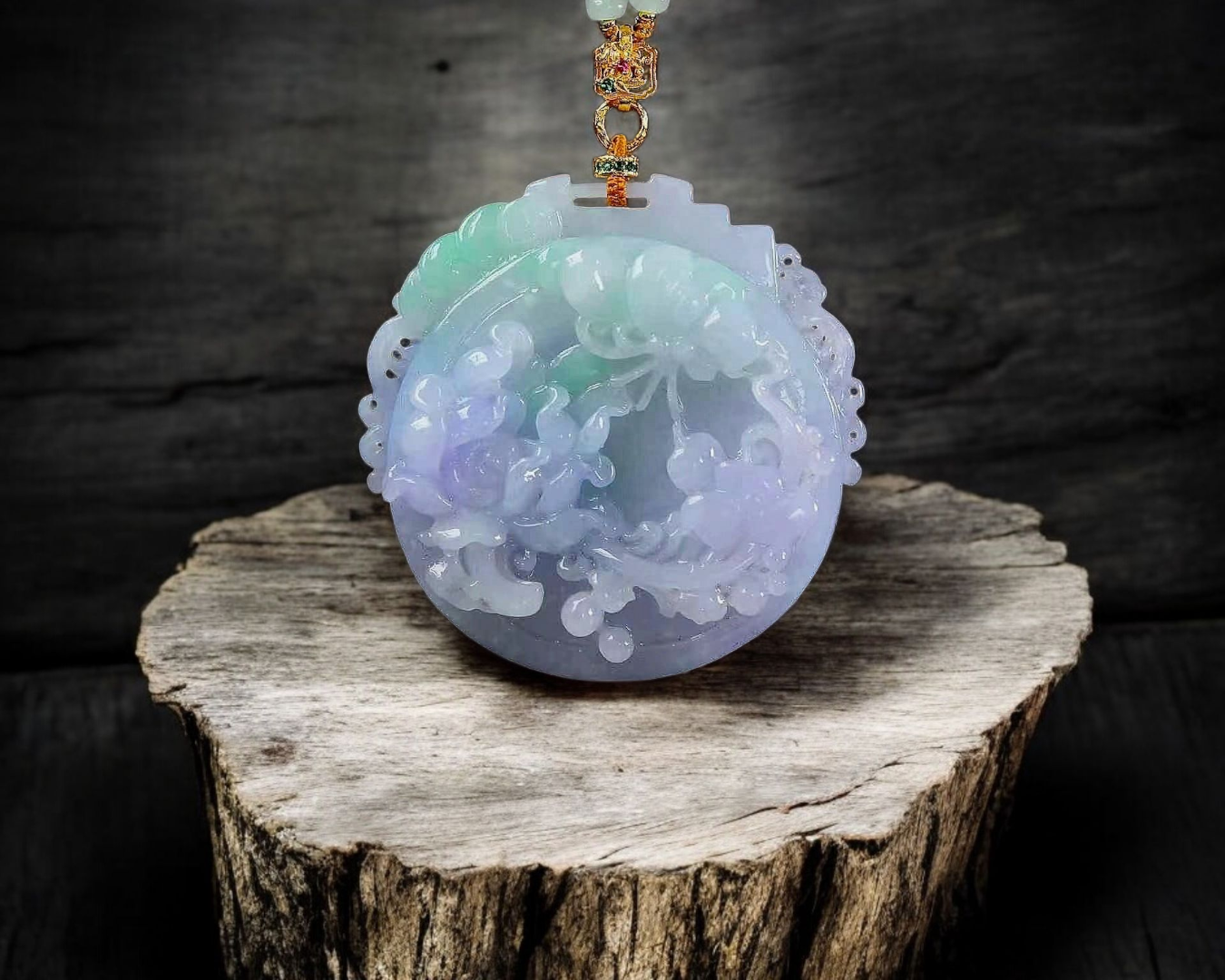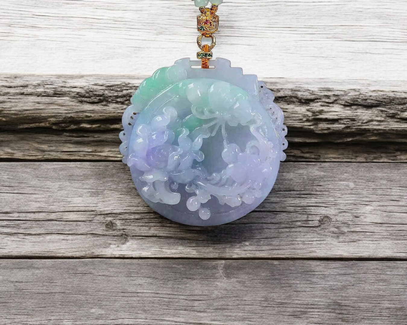 Kenrokuen Garden Lavender and Green Burmese A Jade Necklace and Detachable Hand Carved Pendant with Silver 925 - HKJSL Certified