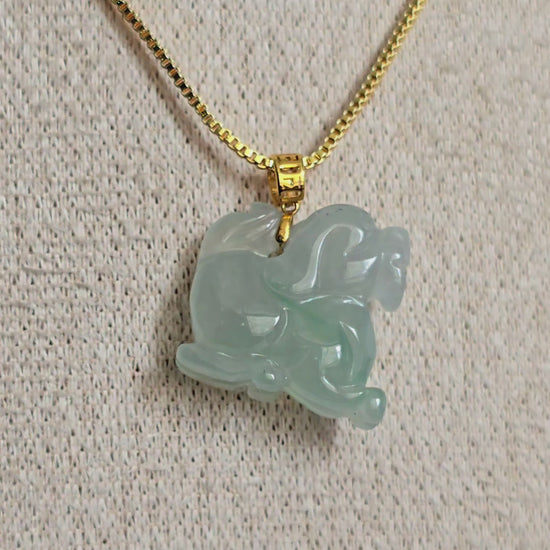 Inspired by man's best friend; this puppy signifies an uptick in loyalty, intelligence and longevity. Our artisans created a unique carving with a supremely translucent, handpicked stone. This charm pendant uses a single block of bright Green and White Jadeite Jade from Burma.