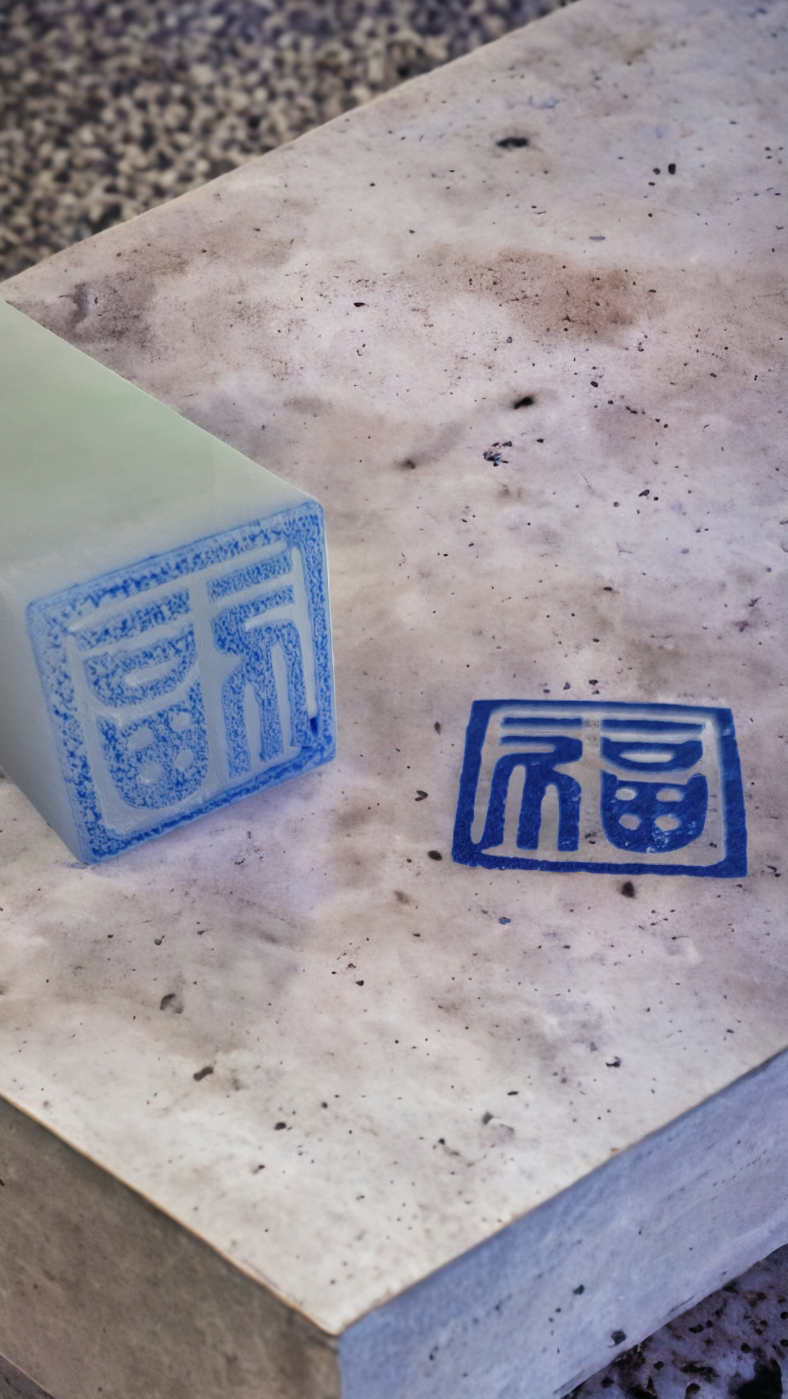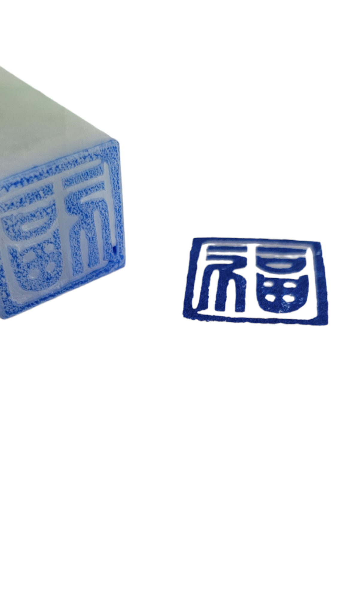 印記是東方的“福”字(粵語中的“福”,普通話中的“福”,日語中的“福”)。方形代表四大古老的力量支柱。這枚郵票是完美的傳家寶。