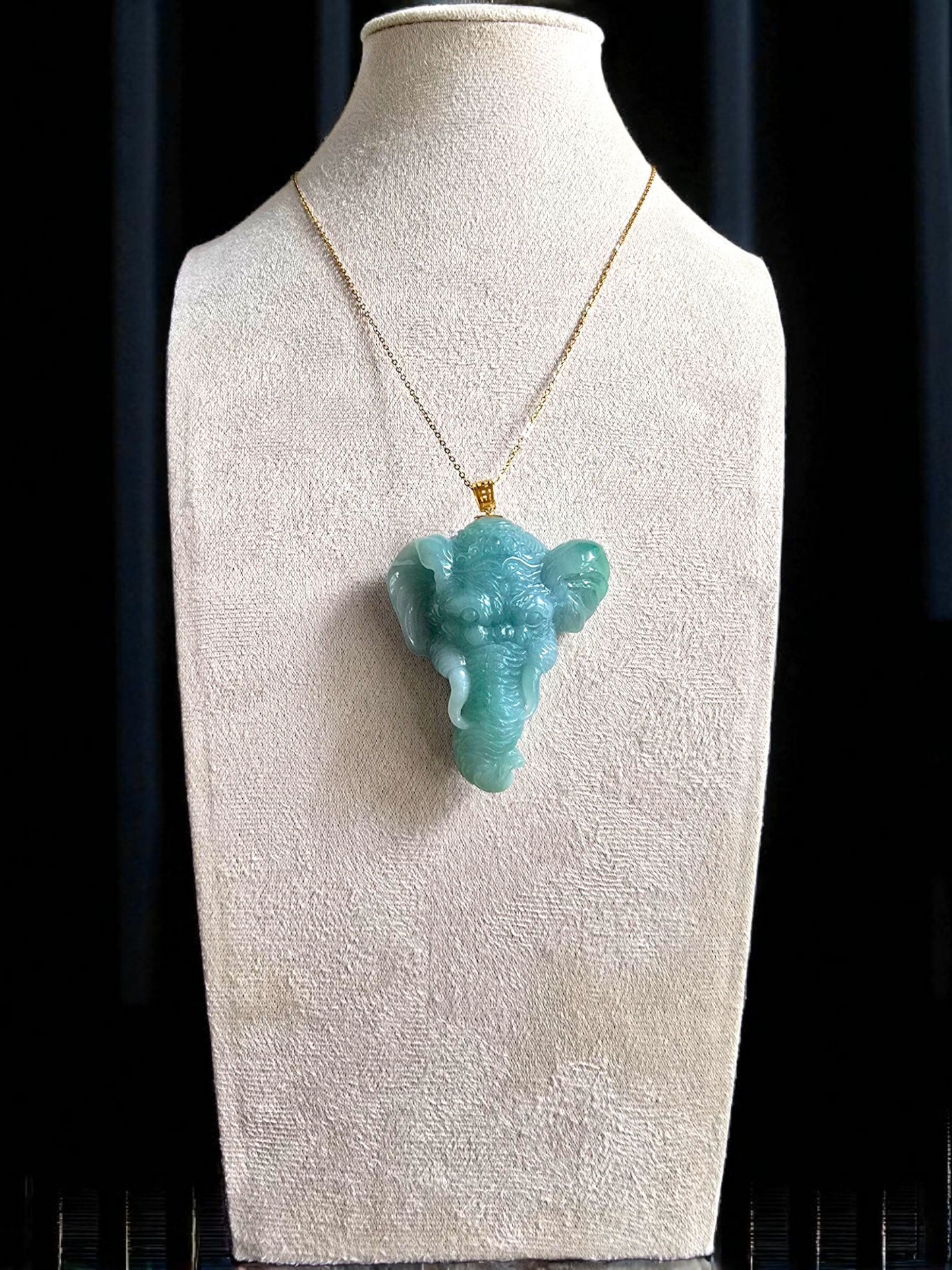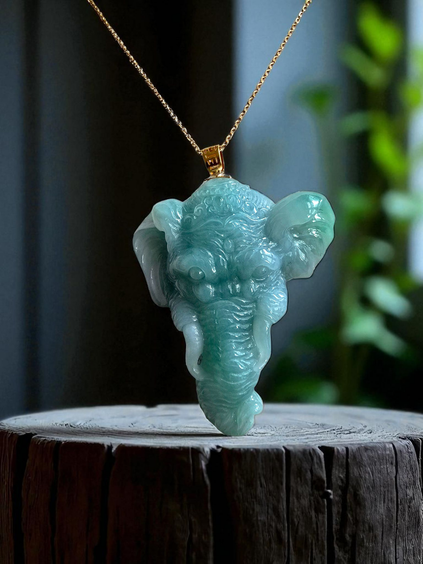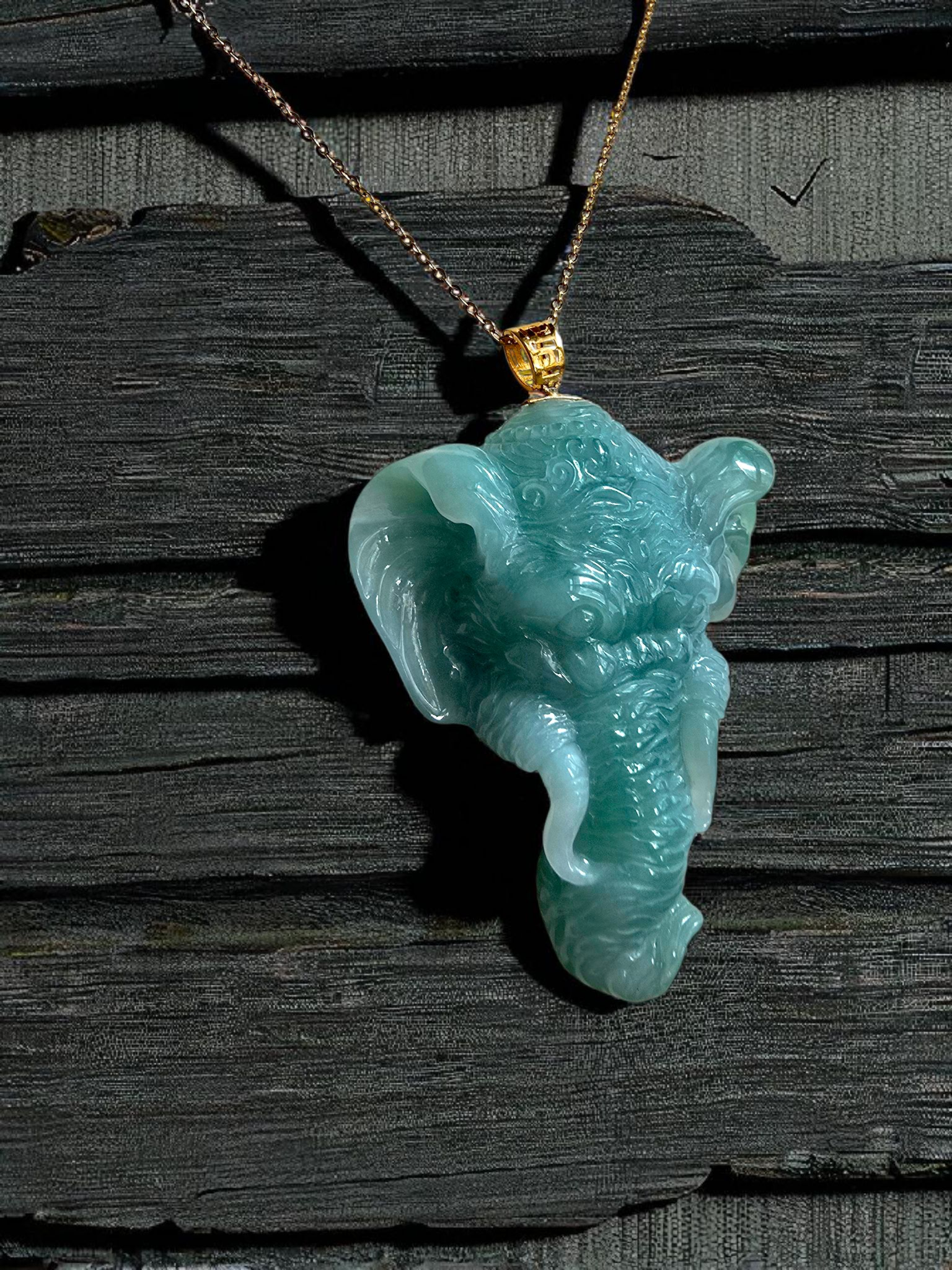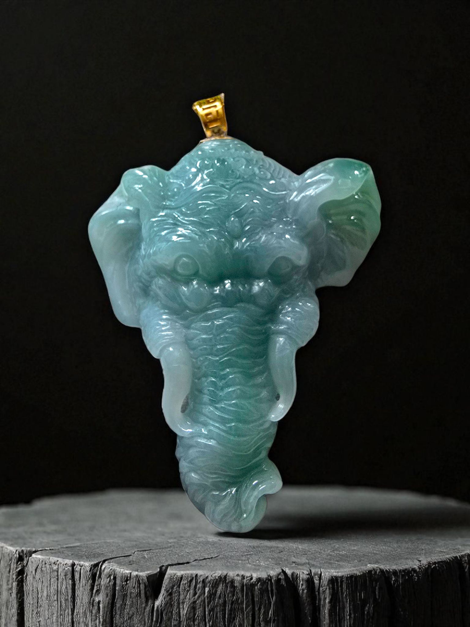 Wise Elephant Head Burmese A-Jadeite Pendant (with 18K Yellow Gold) - HKJSL Certified
