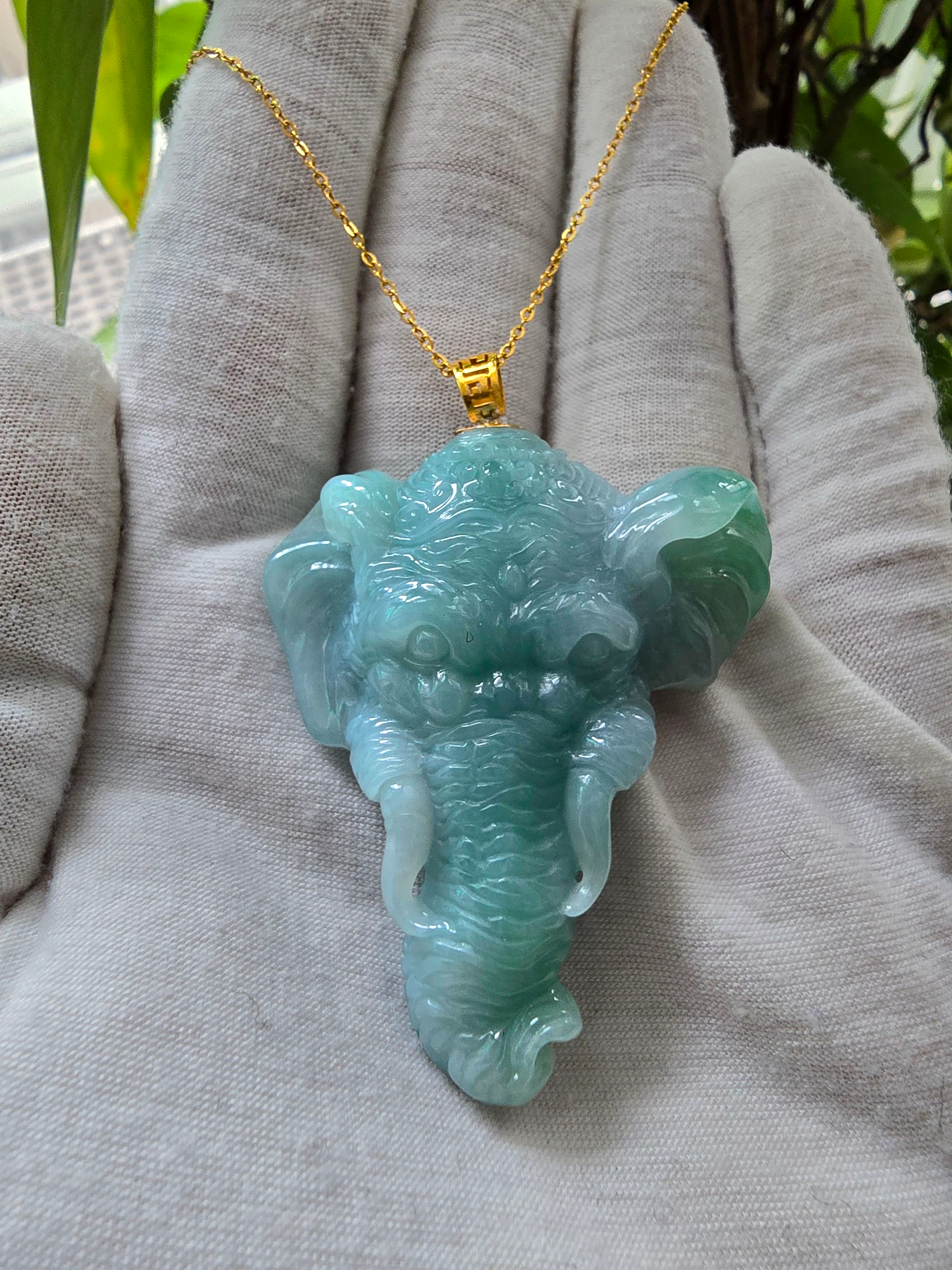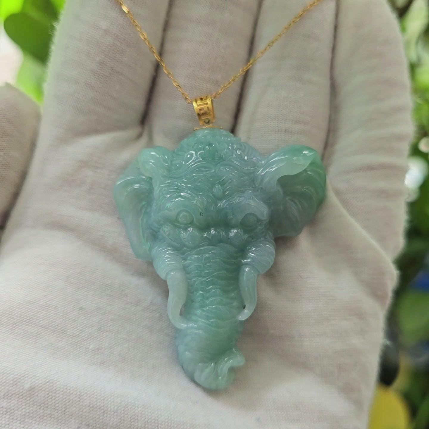 Wise Elephant Head Burmese Green A-Jade Jadeite Pendant (with 18K Solid Yellow Gold) - HKJSL Certified